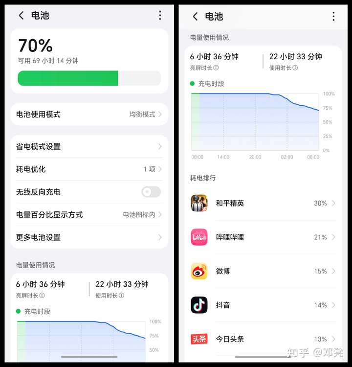 那么实际用下来续航表现到底怎么样呢?其实原本我还想做一个完整的续航测试,但是简单进行了几个项目后我扛不住了,在刷信息流、刷短视频、微信沟通等日常场景下电量掉得太慢了,这就导致续航测试非常磨人,加上最近没有那么多时间我就放弃了。 不过可以说说我这两天的使用情况,大家感受一下荣耀WIN的续航到底是怎样一个水平? 昨天我将荣耀WIN充满电后刷了1h抖音、观看了1h的B站视频、165帧下玩了1.1h和平精英、刷了1h微博、看了1.5h今日头条、以及用了将近1h的微信,总使用时长22小时33分钟,总亮屏时长6.6h,结果电量还剩下70%,这你敢信? 如果是换做其他手机这么一番操作下来就算不关机,电量也普遍来到了30%以下。当其他手机在我手里普遍都得一天一充时,荣耀WIN的续航则是两天打底,可以说荣耀WIN是我迄今为止用过的续航最顶的手机。 另外不得不说的是,别看荣耀WIN搭载了10000mAh巨无霸电池,但是得益于青海湖电池的高能量密度,这款手机的手感并没有像变得厚重,机身宽度控制也很不错,能够比较舒适地握持。 |