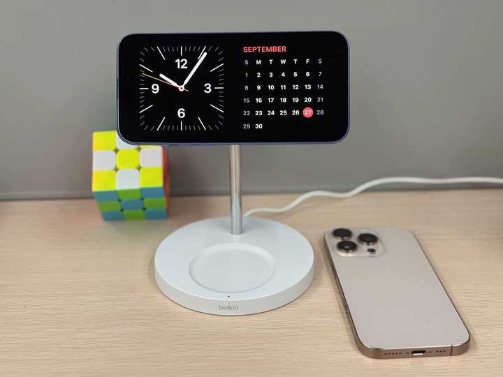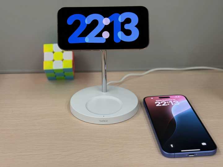 iPhone用户在意的,可能是MagSafe生态的强大。 iPhone这边15W~25W的无线充电真正有很多人用,Android那个50W无线充电有多少人真的在用呢? 这是MagSafe磁吸充电架,美观大方,大部分时候拿起iPhone都是满电状态。 |