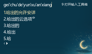组词脑好像坏掉了似的 但你不小心把这个错误选项选中输出了,等你删掉已经打出的错误文字之后,你重新又输入了一遍之前打的拼音,这时候神奇的事情发生了——首选项就是你需要的结果。 示例如下: |