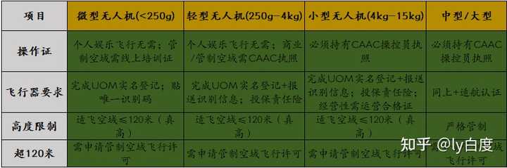 适飞区核心要求 总结一下:如果你想愉快的飞行又不想麻烦就选微型无人机,更高要求选轻型无人机但需要缴纳保险100-300元,更高的机型需要CAAC执照,但农业用无人机无需,但需要农业农村部或相关机构培训。 |