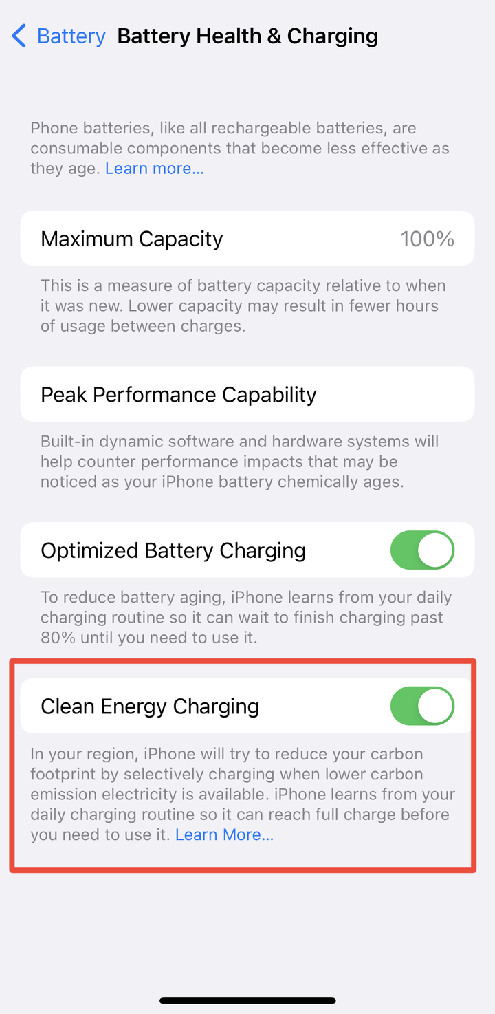 17、绿色充电。 苹果手机从最早的电池健康度,到优化电池充电,智能的保护电池,到如今的绿色充电,减少个人碳指标呀! |