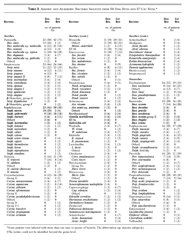 巴斯德菌1999年,塔兰医生(Talan)和他的团队分析了340个狗咬伤和猫咬伤的病例,对感染的伤口进行细菌培养和鉴定。[6] 结果发现:巴斯德菌是最常见的病原体之一,在50%的狗咬伤感染中都能检测到。 这种细菌可以引起软组织感染、肺炎,严重的还会导致败血症。 虽然巴斯德菌不如Capnocytophaga那么强悍,但感染率更高。 狗唾液里普遍存在巴斯德菌。 |