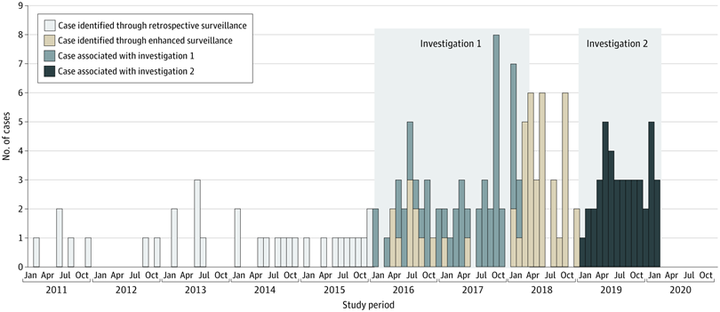 弯曲杆菌 2018年左右,美国多个州同时出现了怪事:[2] 很多人感染了弯曲杆菌(Campylobacter),而且这些感染有抗药性,很难治疗。 |