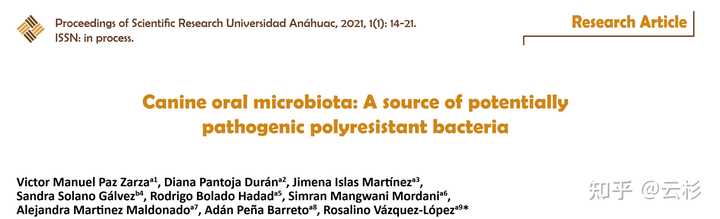 笑完了,让我们严肃地讲讲。 狗狗的口水有多脏,以及能不能吃狗吃过的剩饭。 众所周知,我在知乎有个外号,叫「学术哆啦A梦」。 经常在一些冷门问题下,搬出自己读过的论文。 好巧不巧,狗唾液里到底有什么,我还真看过相关的研究。 2021年的时候,一帮墨西哥学者发表了一篇论文,名为《犬口腔微生物群:潜在致病性多重耐药细菌的来源》: |