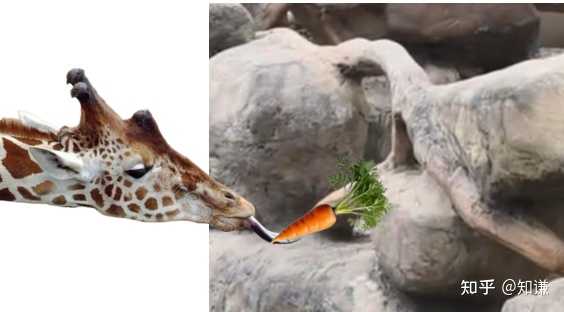 因为,如果食物简单地放置在上图所示的栏杆空隙处,长颈鹿只要稍微努点力,就能够得着,然后吃进去。 原因很简单: 长颈鹿主要通过?长长的舌头卷住食物(如树枝上的嫩枝嫩叶),将其拉入口腔中。?? |