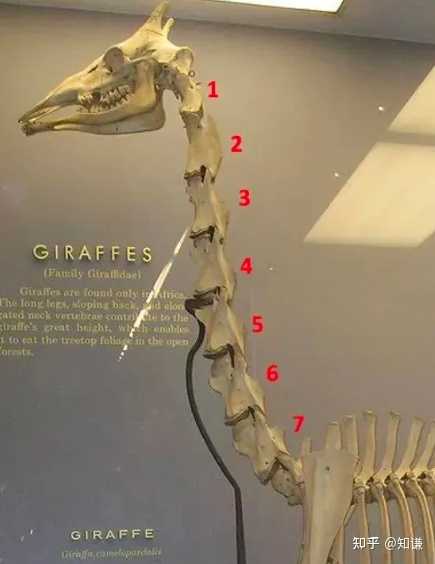 长颈鹿的颈部有独特的关节结构,各块颈椎之间通过球窝关节相连(区别于大多数哺乳动物的微动关节连接),类似于我们人类肩关节的构造,这使得它们能够进行更大范围的运动。 |