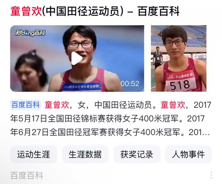 | 而田径赛场也出现两个男性化特征非常强的国字脸“女”运动员。据说可能是打了激素,被取消成绩,移除排名了。 |