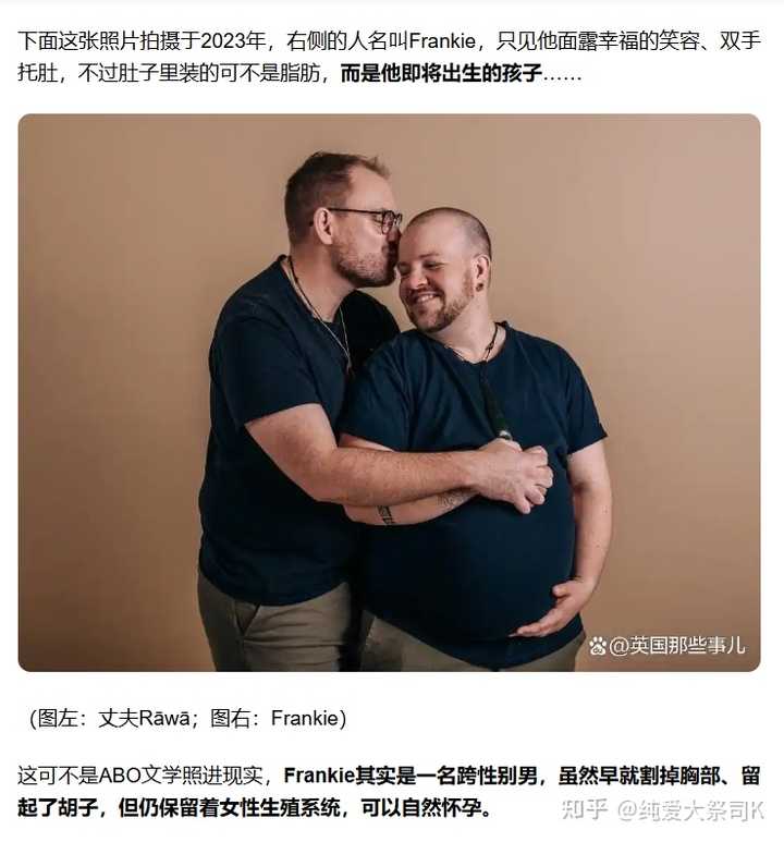 | 欧米那边对于领取育儿补贴的人的形容已经不是“妈妈”了,而是“怀孕的人” 其实就是因为有些女的“变性”成男人,但又保留了自己的生育能力…… 不过面相嘛……这人要不说的话,确实看不出ta曾经的性别 |