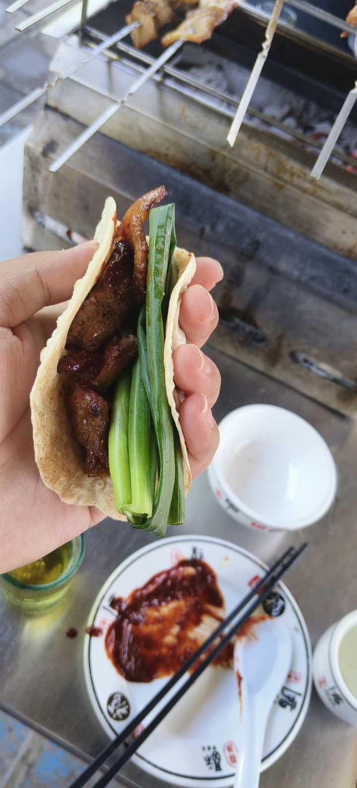 | 香,实在是太香了。 哦对了,辣椒,芝麻,胡椒,各种香料都不算传统意义的荤菜。 而加点葱蒜大酱卷小饼,更是好吃的不得了。所以淄博烧烤告诉我们,荤确实不是骗局。 荤段子也不是。 |