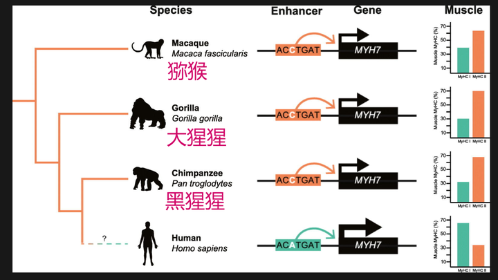| 也就是说,发酵得到的蛋白质、多糖类、脂肪、氮、磷、钾等等好东西会随着微生物一起直接进入牛的真胃里面去消化,瘤胃可以看成食品加工厂,瓣胃和网胃可以看成分拣车间。 牛是会把食品加工工人:微生物和它们加工出来的好东西一起吃掉的。 但是无所谓,反正微生物繁殖很快,吃是吃不完的,至此形成一种循环。 厉害的就在这些微生物能利用各种氮源合成自身的蛋白质。利用这些人类不能利用的氮源以及碳水化合物提供的能量来构建微生物蛋白质 。 说到这里还以说句题外话,尿素既然是一种肥料,大家可能就会联想到植物了,生物课本上讲到有种植物可以不需要额外施加氮肥,因为它们有——? 没错就是豆科植物,它们有根瘤固氮菌,能够把空气中的氮气变成氨,给自己补充氮源。 神奇的是,牛的胃里也有固氮菌,它们也可以把空气中的氮气转换为氨然后合成蛋白质。 是不是厉害了? 瘤胃内的Clostridium、Klebsiella、Proteus、Pseudomonas等固氮菌可以进行固氮,其固氮能力虽不如植物根瘤菌,但可以作为牛体氮源的补充来源。*3 所以在这一步,就可以看出人类和牛的巨大差距了。 人的胃只有一个,里面主要是胃蛋白酶、盐酸等主要负责消化蛋白质并软化纤维素。 肠道是有微生物负责发酵的,但是长度有限,发酵消化能力也有限,人只能食用低纤维蔬菜(如叶菜、瓜果),无法消化高纤维草料或秸秆,吃秸秆或者草料维生是做不到的。 因为人类肠道菌群含有的纤维素酶比较少,跟牛的瘤胃里面那种对纤维素的利用率能达到70%的工业级消化完全不一样。 这是第一层消化系统的限制。 第二层就是基因限制了。 2增肌的基因 人和大猩猩的基因相似度能高达98%,大猩猩的首领叫做银背大猩猩,它们可是最强壮的灵长类动物。 就是这么小小的基因差异导致了我们的肌肉量如此不同。 最大的差距就在II型快肌纤维,这类纤维收缩力强、体积大,非常适合爆发力动作。 大猩猩的肌肉快纤维比我们多很多。 人类则在耐力型的I型慢肌纤维和II型纤维之间更为平均,人类的马拉松能力在哺乳动物里面是翘楚。 |