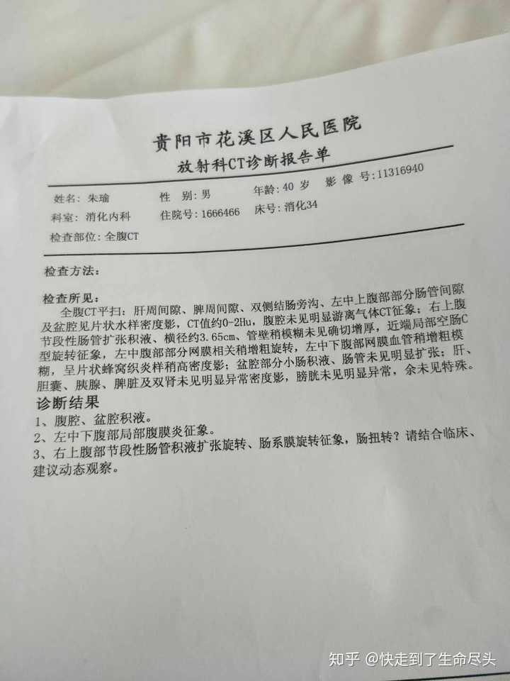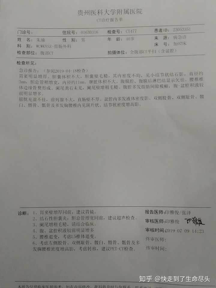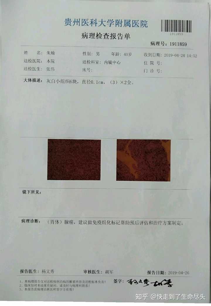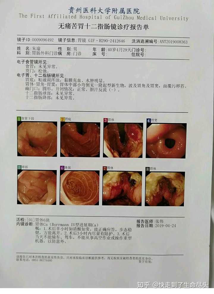 这报告差点让我白挨一刀 来到贵州省最好的三甲医院,全部重新检查一次。哪里有什么肠扭转?先查出来的是胆囊泥状结实。由于做胃镜的病人太多,我预约到的是一个星期以后。无痛胃镜很舒服,没有任何痛苦就检查完了,医生在我胃里取了个标本叫送去活检,结果又需要等三天。不过我已经知道那是什么东西。吐血起我就知道了,只是不想捅破这张纸。太多太多的例子一场病就拖垮一个家。辛苦这些年终于住进老婆喜欢的大房子,终于有她的衣帽间和马桶了,可是如今这一切仿佛都结束了…… 三天后 毫无意外结果出来,腺癌。 |