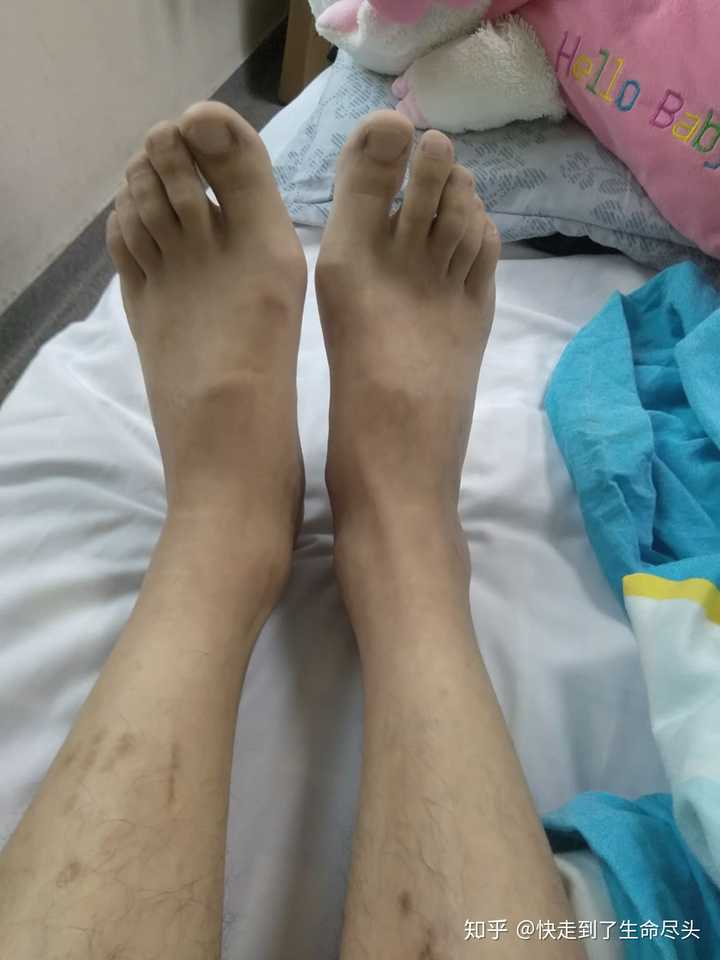 脚越来越肿左脚痛到了骨头里面走不动了 昨天开始脚越来越肿。今天左脚只要一动就感觉骨头里面疼痛。刚才去公共厕所出来就走不动了。老婆见我很久不回跑出来找我把我慢慢扶回病房。最怕最怕的事情快要发生了,一旦无法行动就只能躺着度日,那将是所有癌症病人生不如死的开始。 |