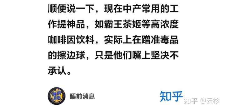 典中典之督工说到了我熟悉的领域。 利益相关:一天一升黑咖啡的科研选手,奶茶爱好者,前动物营养领域工作者,为了自身健康读了不少相关文献。 已知事实:霸王茶姬的咖啡因浓度不如很多市售咖啡。 1.世界卫生组织不认为咖啡因具有毒品的成瘾性 这里要先明确个定义。 所谓成瘾,指的是个体对物质或行为产生的强迫性依赖,表现为明知有害仍无法自控的精神疾病。 不是说我最近天天听哈基米音乐,把来电铃声都换了,就叫成瘾。 主流科学界和世界卫生组织(如WHO)不认为咖啡因具有阿片类等毒品的成瘾性。 世卫组织的态度是:没有任何证据表明咖啡因的使用与严重滥用药物相关的身体和社会后果有可比性。 |