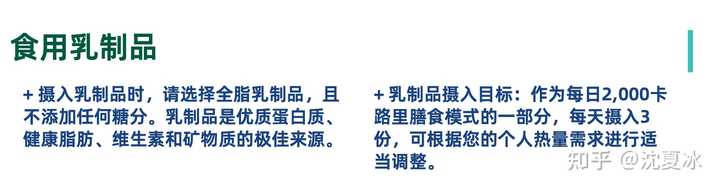 其实,各国膳食指南一致认为奶制品是优质蛋白、钙、VB2的来源,酸奶还对肠道健康有益,但考虑到全脂奶制品消费量高,饱和脂肪含量高,所以2020~2025版本旧版膳食指南,更推荐选择脱脂奶制品。 新版膳食为什么推荐全脂乳制品?因为遵循第一性原则,指南认为:乳制品是高营养密度的天然食物,不能因为其含有“饱和脂肪”,而影响这种天然食物的选择。 但我稍微计算的下,以2000kcal能量等级计算,每天3份全脂奶,总共大约600g,饱和脂肪大概是9~12g,提供72kcal~108kcal,大概占到总能量的3.6%~5.4%,除非其他肉主要是白肉和鱼虾,否则加上其他红肉、随随便便饱和脂肪比例超过10%。 对于国人而言,这条没有任何参考意义,因为国人奶制品总体消费量远低于米国,所以无论全脂、脱脂,只要愿意喝就是好的。 8.特殊人群可采用低碳水化合物饮食 |