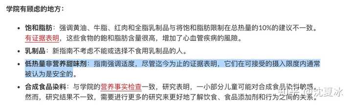 1.先说争论比较大的,新版指南不建议选择任何人工添加剂和非营养性甜味剂,因为不属于「天然成分」,或者说没有证据证明它们对健康有益 但美国饮食与健康协会认为,对于所有被允许使用的食品添加剂,都存在安全剂量和安全使用范围。我个人也比较赞同这个说法,鼓励天然食物的同时,没必要妖魔化食品添加剂。 |