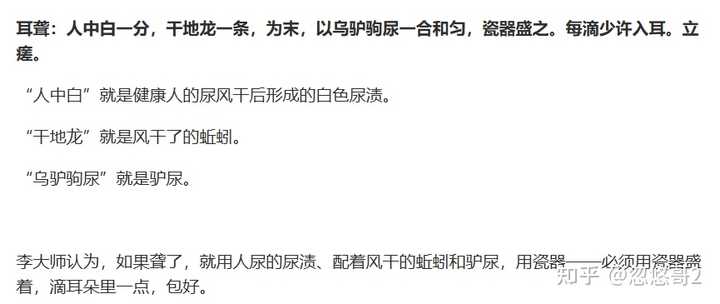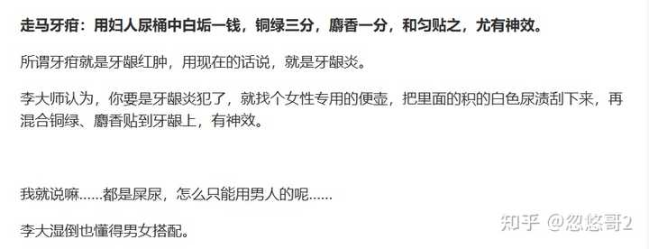 新会陈皮(广陈皮)因为药用价值较差,在2020年之前并没有纳入中国药典。2020年后专门加了内容,叫“广陈皮”。从成分来看,药用价值是远不如“四川陈皮(极为便宜,医院药房有售)”。然后说到这里,开始有人要跳出来拿《本草纲目》说事,实际上《本草纲目》之前是没有医书记录广陈皮的,同时中国药典里面也直到2020年才专门正式纳入新会陈皮(新会陈皮是在 2020年版《中华人民共和国药典》 。这次收录的一个重要突破是,药典首次为“广陈皮”单独设立了区别于普通陈皮的质量标准)。当然,还要拿《本草纲目》说事,那我就不得不把同样记录在《本草纲目》中的另一位治疗咳嗽的药物拿出来说一下了,那就是中世纪欧洲人喜欢的内服木乃伊了(没错,就是去埃及偷木乃伊来磨粉服用)。那新会陈皮为什么会“打赢”川陈皮?不是药效,而是“药食同源”的价值。相对于川陈皮,新会陈皮的香气更浓,形态更美(新会皮使用三刀法,开出来的皮如同花一般;四川皮使用手剥法,没有形态,很破碎);味道更淡(川陈皮且相对更苦,广陈皮可以煲汤和泡茶)。能“药食同源”,还有特殊香味,喝下去让人心旷神怡,这就意味着就可以打着“养生”“茶饮”的旗号卖货了,这显然是常规操作,就如同白茶一样。不过换个角度来看,芳香好闻的玩意往往都可以往贵得卖,比如香水。比起陈皮,一瓶15ml的香水卖大几百,也是常有之事。 最后分享一些《本草纲目》的荒唐之法,让大家开开眼界: |