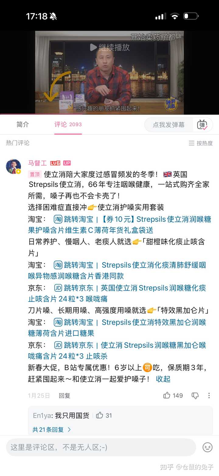 我建议督工作为一个经常上B站热门榜,每条视频播放量几十万的新媒体,停止虚假宣传这款产品为润喉糖,而是以OTC药品的广告宣传方式来进行合作。 @马前卒official 如果不改变的话,我想问问,理由和动机是什么? |