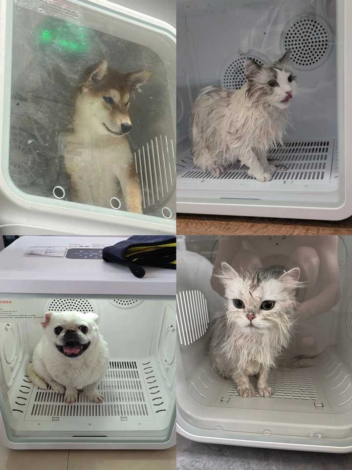 看着跟一团抹布一样的猫猫狗狗最后吹成蓬松大团子,很有治愈感: |