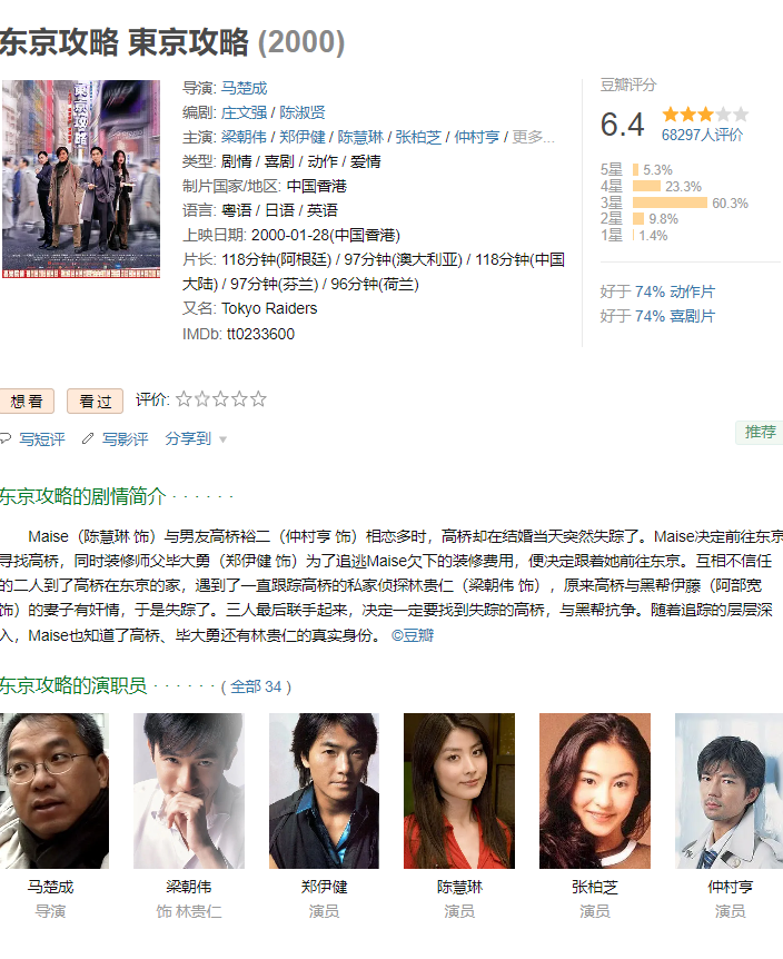 当然毕竟是今年的电视剧,外景不可能如此还原 还有部2000年的港片,《东京攻略》,卡司阵容耀眼 外景就是当时真实的东京 ,和现在比的确没太大变化,甚至很多广告牌都没换 |