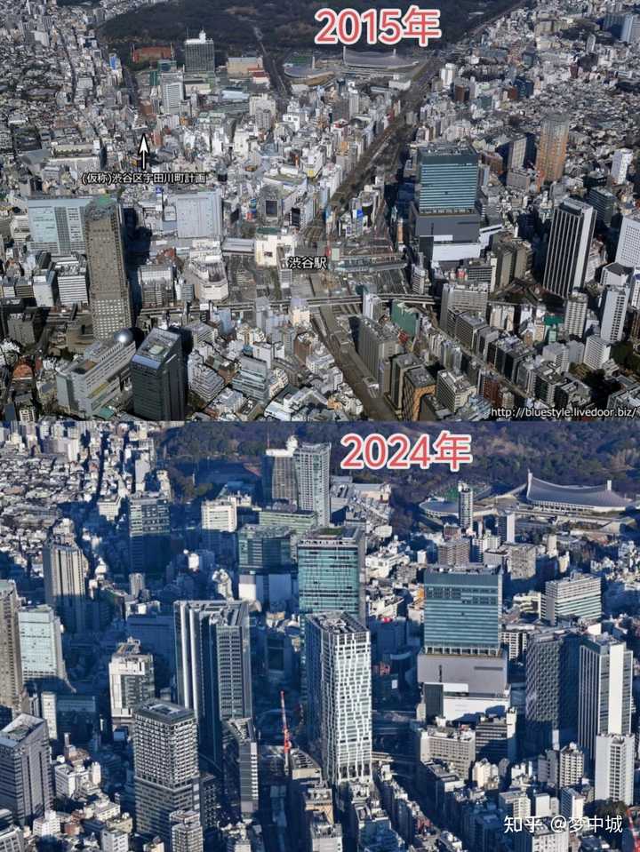 距离不远的东京塔二十年的进化(天际线跟六本木部分重合) 另外说到大规模开发还绕不开的就是涩谷 因为住得近 我真的是一点点看这个地方再开发起来的 |