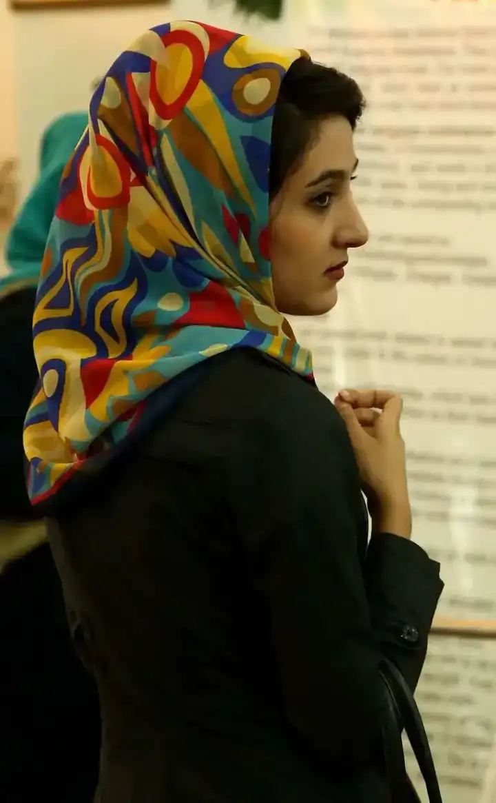 可是!伊朗本地女生完全不是这个样子。 她们的围巾是固定的,发卡卡住、帽子顶住、发圈托着,一丝不乱,像个完美建筑工程。 而更绝的是,还在“头巾美学”上下足功夫:宝蓝、墨绿、琥珀红,花纹精致得像莫高窟壁画现场转印 |