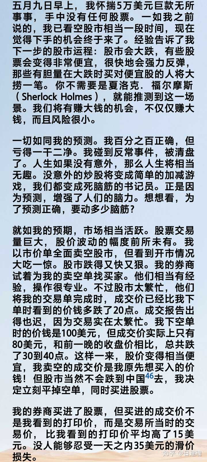 此时另外一位手持比特币的老哥,同样也预判到了我的预判。 身怀此等奇思妙想的他,想必同样也是一表人才…(此处省略一堆赞美之词) 机智的他,估计跟我一样,这个时候突然发现交易所里比特币对USD1的价格很合适,几乎没什么溢价。 既然用USDT和USDC换没啥赚头,那我干嘛不直接用比特币原价兑换? 于是便果断出手,点击一键卖出了。 在点击卖出之前,可能是功能饮料之类的喝多了。整个人显得比较亢奋,或者说,急不可耐。 在市价单和现价单两个选项当中,选择了市价成交。 从动机上来看,我非常理解他的心情。 毕竟大家各显神通,来回付出了这么多溢价费用。仅仅一个月的活动,到最后都还不知道究竟能吃到几个点的年化。 而这位老哥仅仅只是脑筋急转弯,换了一条别的赛道,就可以完整吃到收益,还不用到处折腾。 说实话,那一刻连我都忍不住想说一句: 干的漂亮! 那我为什么没有这么做呢? 因为以前吃过这方面的亏。 2022年,身逢美联储加息的大熊市。 当时的我在找机会做空比特币。 等到某天机会真的来了,比特币选择向下突破,于是那天深夜我果断追了进去。 结果前一秒显示的价格还是40600,等我用市价下单后成交价竟然变成了39800。 道理我都懂,可就这一秒钟滑点800美元也太离谱了吧? 而且这可是比特币,几万亿的市值,全球流动性最好的资产之一。 吃到教训的我从那以后再也没用过市价单。 其实早在一百多年前,有个小学一毕业就出来打工的美国少年,四十多岁正值意气风发的他,曾经接受采访,口述过一本名为股票大作手的回忆录。 里面清清楚楚地记录了,他第二次破产的整个过程和具体原因: |