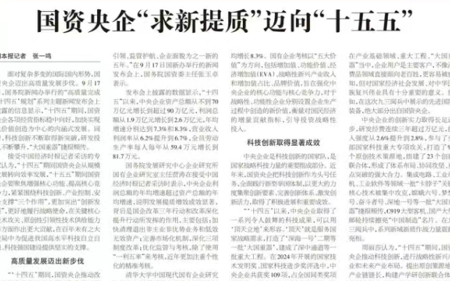 对于央企以后的发展,十分有必要看“十五五”时期经济社会发展规划 里面有一段特别值得重视,这段话意在说明今后五年经济增长逻辑在发生转变。 国务院国资委党委会会议表示,要对标对表D中央决策部署,在全面客观评估国资央企“十四五”规划实施情况基础上,精准把握内外部环境变化。坚持目标导向与问题导向相结合,坚持战略性和操作性相统一,坚持全面规划和突出重点相协调,科学编制高质量、切实可行的“十五五”规划。 要强化科技视角和产业导向,聚焦增强核心功能、提升核心竞争力,更好发挥国有经济战略支撑作用; 加快推进国有资本“三个集中”,以科技创新引领产业创新,加快打造自主可控的产业链供应链; 助力增强我国产业体系的完整性、先进性和安全性,加快培育发展新质生产力。 1、把“要强化科技视角和产业导向”,放在“聚焦增强核心功能、提升核心竞争力,更好发挥国有经济战略支撑作用,加快推进国有资本“三个集中”,以科技创新引领产业创新”的前面。在约定俗成的话语体系前,放上“要强化科技视角和产业导向”,自然引人注目。 2、“助力增强我国产业体系的完整性、先进性和安全性”,在纲领式语言中出现这三个“三性“,值得重视 3、“加快培育发展新质生产力”这次放在最后收尾。意思是“加快培育发展新质生产力”不是一项工作,而是总体的、主要的。 显然,中央企业在“十五五”期间发展新质生产力的核心思路已经明确,其核心是以科技创新为引领,加快传统产业升级与新兴产业发展,最终构建现代化的产业体系。 通过这次会议,我们可以理解未来央企发展方向的关键 那就是 央企的核心使命正从追求规模和速度,转向成为国家在科技竞争和产业安全支撑的“战略支柱”。 “十四五”是国民经济的重要支柱与"稳定器" ,”十五五"是国家战略核心支柱,宏观转型与安全的"压舱石"。从侧重于经济的"稳定器"和"顶梁柱",升维为在关键时期支撑国家战略、突破瓶颈的"核心支柱"——这是战略定位上的变化 “十四五”是战略性新兴产业投资大幅提升,推动传统产业升级;" 十五五"是前瞻性战略性新兴产业成为最紧迫的布局方向。从在既有产业基础上"补短板、促升级",转向集中资源开辟引领未来的新领域、新赛道,开启增长"第二曲线"——这是产业重点的变化 “十四五”是 增加研发投入,建设创新平台;"十五五"是聚焦"根技术" 攻关与原始创新,强化中试验证与成果转化。从注重研发投入和平台建设的"追赶式创新",转向攻克底层技术、构建自主产业生态的"源头式创新"——这是创新逻辑的转变 “十四五”是 规模与效益并重,启动"一企一策"考核探索 ;“十五五”是全面转向"五个价值" (如增加值、功能价值、战略性新兴产业收入占比等)与战略使命评价。指挥棒从偏重规模和利润,转向科技创新、战略安全、长期价值等多元目标,引导企业放弃短期诱惑,追求长期竞争力——这是考核标准的变化 “十四五” 以内生增长为主,同时推进战略性重组。“十五五”是深化战略性专业化重组整合,打造产业投融资平台,更大力度开放合作。从主要依靠自身滚动发展,转向更大范围地撬动资本、整合资源,并通过开放场景与各类主体协同创新————是的,你看到了,发展路径转变 这也意味着央国企,从此之后,并没有"永不倒闭" 的滤镜 对求职者而言,选择央国企时,不能仅凭 "国企" 标签决策,更要关注三个维度:行业属性(是否为政策支持的核心领域)、企业层级(本级还是末端子公司)、核心竞争力(技术、资源是否不可替代) 起风了,诸位 |