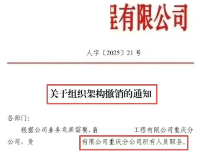 “合肥建工集团有限公司决定自2025年8月31日起,解除与你签订的劳动合同,工资将结算至2025年8月31日,经济补偿会依法支付。” 这家诞生于 1958 年的老牌国企,曾是合肥建筑行业的 "扛旗者"—— 从合肥市建工局到合肥市第一建筑安装工程公司,再到并入世界 500 强海螺集团,它手握 3 项 "鲁班奖"、1 项全国市政金奖等重量级荣誉,投资及开设的分公司超百家,曾经也拥有上万名职工。如今一夜之间宣布解散, 与此同时,某央企重庆分公司发了红头文件,宣布正式解散 |