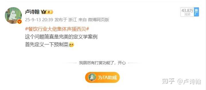 这个结论的高明之处就在于,他也对。 只要你动的多了,消耗够了,确实哪怕喝可乐吃炸鸡也胖不到哪去。 其实本质就是肥胖问题,这个锅要往哪甩,你可以往含糖饮料上甩,可乐喝多了肥胖,也可以往脂肪上甩,你炸鸡吃多了胖,还可以往运动上甩,你动的少了。 而可口可乐的高明之处就在于,没有正面接团,和大家辩论什么我的饮料含糖量不高,我的糖不是普通的糖,而是侧面迂回,直接去科普运动的重要性,你别管可乐不可乐,只要你运动多了就不用担心肥胖了。 听起来是不是很简单? 但关键就在这里了,可口可乐并不是问题炸雷了,舆情爆炸了,才火急火燎的跑去搞危机公关,科普运动重要性的。 炸雷的时候再指责大众不运动肥胖,这属于火上浇油。 纽约时报他们发现,可口可乐在三十多年前就开始下功夫了,现代营养学什么时候起步的?美国营养学会是1934年成立的。英国生理学家约翰·尤德金1972年指出糖对肥胖的危害。 也就是可口可乐在几十年前营养学界刚刚关注到糖危害性,大众完全没有认知,甚至学界观点都未必明确的时候,他们就知道这件事,并且做出应对了。从推动运动减肥,到准备无糖可乐,人家早就准备好了。 时刻关注学术界前沿发展,提早做出各种形式应对,并且绝对不和大众认知对着干,而是顺着干 绝对不要去和大家辩论什么吃糖不会胖,你直接科普运动有利健康就得了,这个结论是肯定没错的,也有利大众健康。放之四海都是没问题的。 什么叫世界巨头,这就叫世界巨头。 西贝的问题,某种意义上很像 贾国龙觉得西贝不需要公关,这个底气其实是有的, 到目前为止,西贝被打这么惨,但是并没有哪家同行出来拉踩,甚至还有不少支援的。 实体服务店坐拥大量店员,舆论又是全程逆风,但目前还没哪个店员出来怒斥薪资待遇的 又是后厨直播又是店员采访,来回整了这么多节目,西兰花梗都做成表情包了,但真涉及食品卫生安全的好像也没有 简而言之就是,其实西贝的牌面非常好,硬实力确实还行,这给了他们一种错觉,我非常强,绝对经得起大众考验。但他们忘了一个点,最关键的一点,大家也都清楚,那就是预制菜问题。 真真正正的阿克琉斯之踵 预制菜的问题在哪里 在于这个问题根本就讲不清 我去年9月就提了,讨论预制菜,那我们首先要定义一下预制菜,请问谁来定义? |