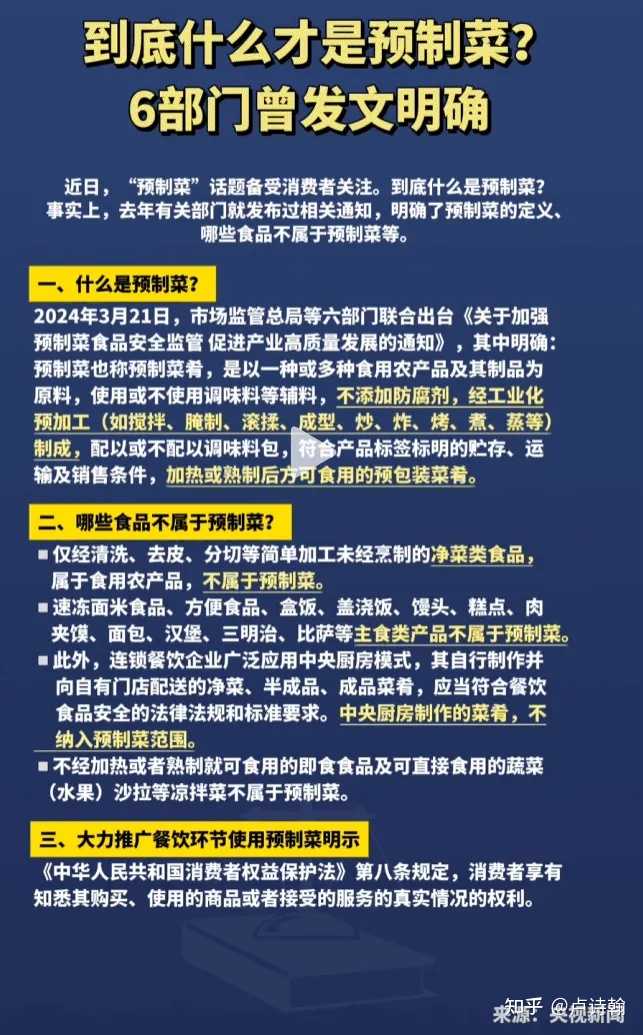 小饭店现杀的不算预制菜,这个没争议 外卖店那些调料包算预制菜,这个也没争议 但中间这些,冷冻牛排冷冻羊排给你煮熟了做上来的,算预制菜吗? 一千个人一千种算法,你说不清啊,这要辩论到什么时候? 有人说国家标准,其实国家标准已经很有利西贝了,你们去看一下,国家的预制菜标准, 连锁餐饮门店使用自己制作的半成品菜肴,中央厨房做出来的,不算预制菜。 |
