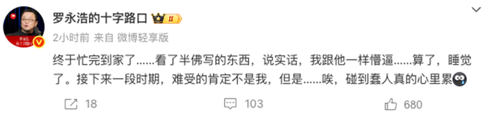 4. 事情到3的时候,已经很离奇了。 毕竟贾老师这时候已经进退两难了。 但他们不进也不退,选择了蹦极。 官号开始发各种鸡汤,知名经典《毛毛文学》,就是这时候开始出来的。 整个事情已经走向了荒诞且幽默的地方了。 5. 经过了234,罗老师已经不想理会西贝了,他第一次觉得累了。 这时候,西贝也开始降价了,看起来事情已经过去了。 不行。 华与华又蹦出来了,成功引发了罗老师的录音门事件。 |
