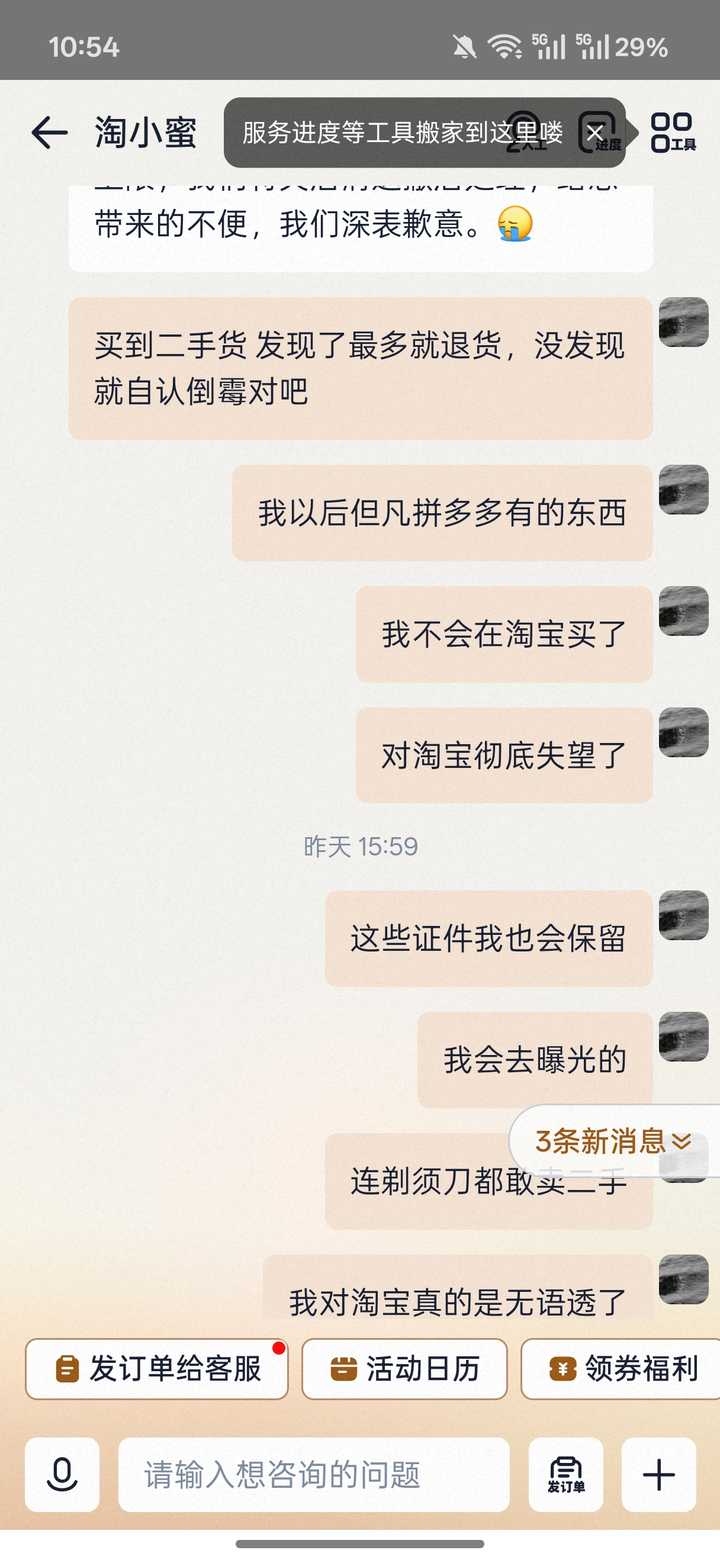 我以前是淘宝黑钻,后来出国留学掉下来了,因为回国之后觉得淘宝衣服啥的质量太差,网购频率降低了。 但不管怎么说,我一年在淘宝也是大几万的花销的,除了买到东西不满意退货退款之外,基本从不维权,仅退款也一次都没申请过。 你要是觉得我是垃圾客户挑毛病想薅商家羊毛,淘宝客服维护正义保护了商家,那你赢了。 事实上,我这种人应该就是淘宝的中坚用户,我12年高一就开始用淘宝了,那时候收货都要等放假,一直到现在这么多年,我衣服日用品基本上都是淘宝买的,累计在淘宝上花的钱,没有一辆大奔也有一辆奥迪了。 我买东西不怕你比别人家贵一些,事少质量到位就行,只要东西过得去我绝对不售后,哪怕买到冤种价的货,我一般也懒得退,认栽了。 但这回我是让淘宝教育明白了,剃须刀这东西我家里人都不敢混用,然后在你淘宝买到一个二手的,然后我找客服,客服居然维护商家。 以后吸取教训,贵的上京东,便宜的上拼多多,实在没招了我再去淘宝。 - 好像很多人没理解我重点,还有说我就是想仅退款的,甚至有说这二手剃须刀是我自己搞来的,就是想敲诈商家,我不知道你这么认为的逻辑在哪里。 我收到货确认是二手货之后,对商家的唯一诉求是退货,我全程没跟商家要任何补偿,因为剃须刀这东西我心再大也不可能用二手的,你会用别人的牙刷吗?别人卖二手电动牙刷给你,你会要求他仅退款,牙刷留着用吗? 我的重点是剃须刀这种贴身工具都敢卖二手,淘宝方如果没有处罚那太扯淡了,你看我跟商家的聊天记录,我基本上一句废话也没有就退货了。我联系淘宝客服是想知道淘宝对这种卖二手剃须刀的商家会有什么处罚,结果就是什么都没有。那既然淘宝什么处罚都没有,你是商家你会在拼多多卖二手还是在淘宝卖?毕竟拼多多卖二手被买家发现绝对是有处罚的。再加上之前我几乎什么东西都在淘宝上买,那得有多少是类似这种的二手的我没发现呢?所以我就破防了。 至于说这二手剃须刀是我自己搞来坑商家的,我为什么要贴自己的消费记录,就是告诉你,我一年在淘宝花六七万,留学前一年花十来万,我要想薅商家的羊毛,我会一次仅退款也没申请过吗? 我找淘宝客服投诉之后,这商家的态度就是死猪不怕开水烫,主打一个我就卖了,怎么着? 他卖的可不是仅拆封,仅拆封这种我都可以理解,他卖的是用了很久,充电口塞满胡渣的纯二手啊。 我这人就是认死理,买东西买贵了我不说二话,但如果商家是故意坑我,我一定维权。结果我找客服维权,淘宝客服给我的回复是,在淘宝,你哪怕把纯二手的贴身工具当新的卖,也没问题,我们站在商家这边,不会有任何处罚。 说白了,我是商家我也卖二手,没有处罚啊。 至于仅退款,我没申请过,我也从来不占那个便宜。 |