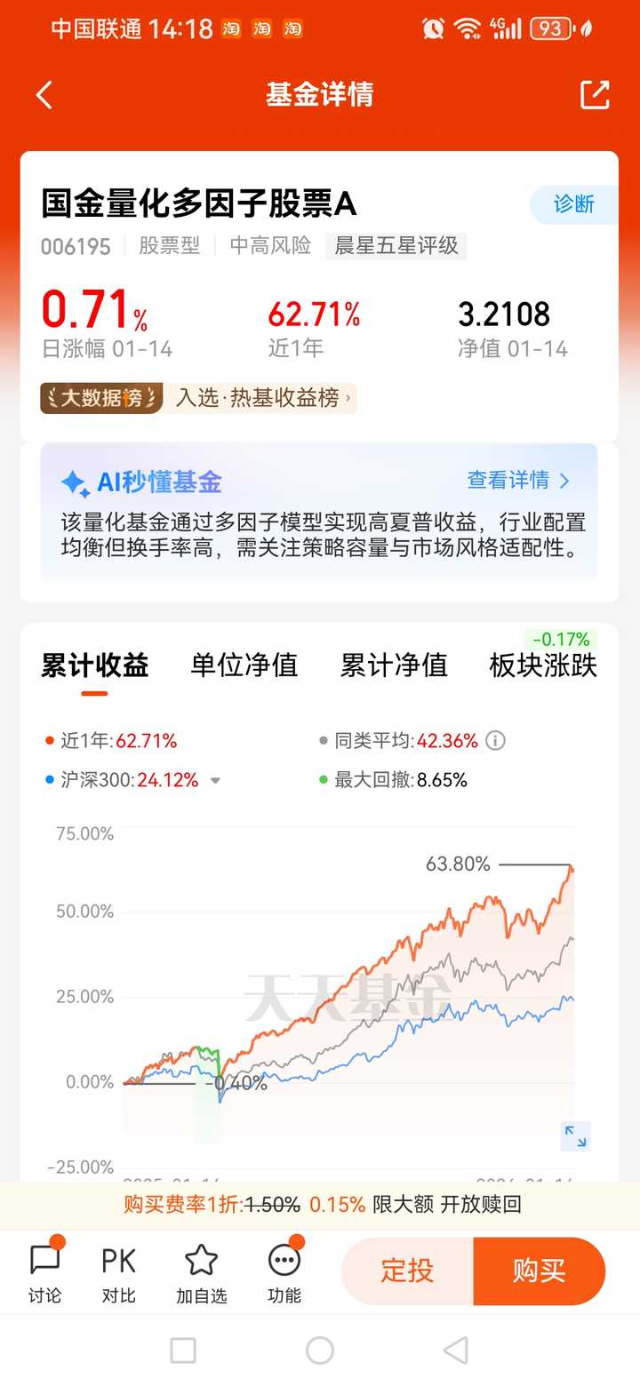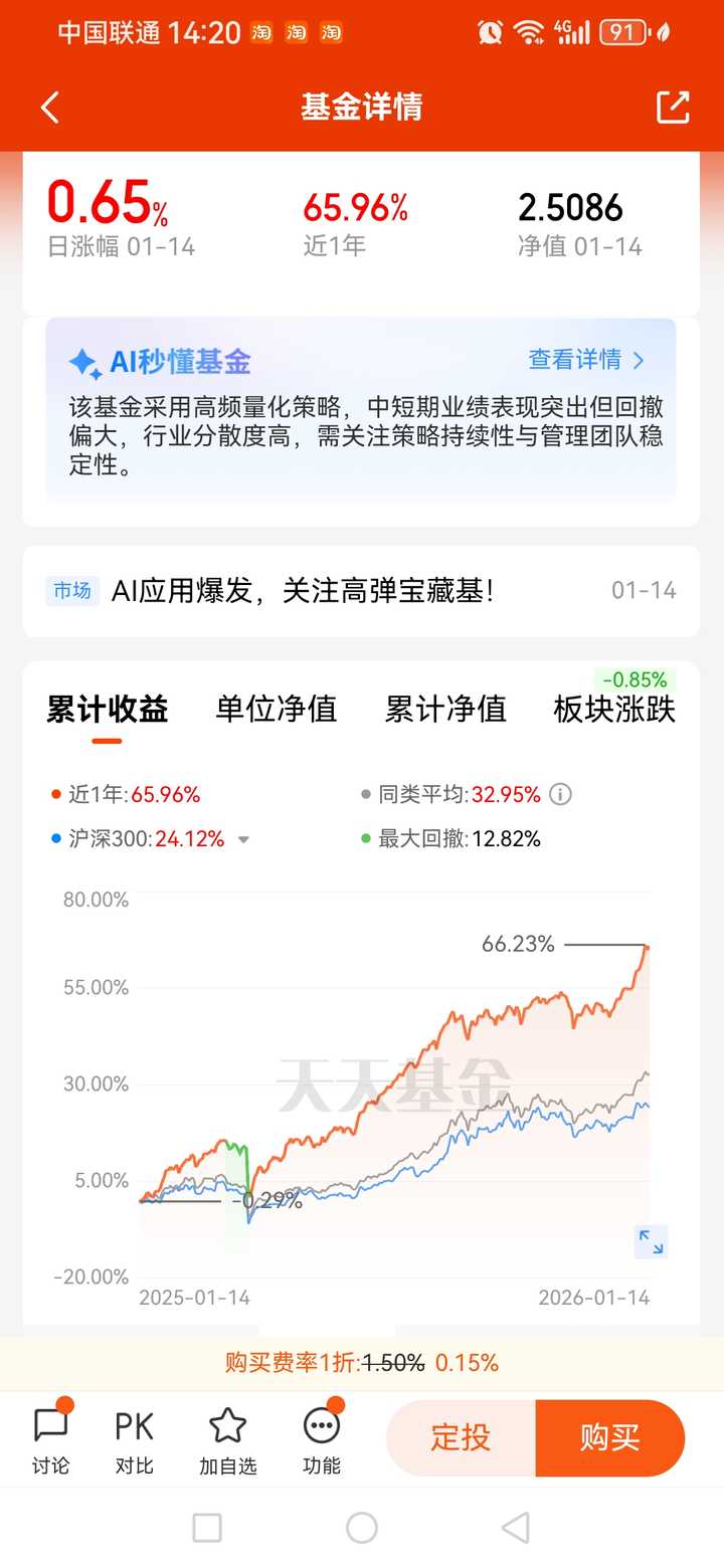 广发量化 2024.1.1基金净值1.5712 2025.12.30基金净值2.3392 收益率48.87% |
