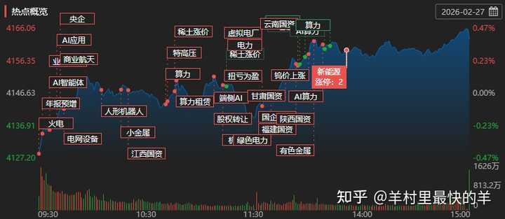 今日新闻要点: 利好: 卧龙电驱:自愿披露2025年度部分财务数据 推进H股发行上市 中文在线:向香港联交所递交境外上市股份(H股)发行上市申请 视觉中国:拟发行境外股份(H股)并申请在香港联合交易所主板上市 艾迪药业:实控人之一、董事长傅和亮拟1000万元—1500万元增持股份 中源协和:子公司获医疗器械注册证 产品为国内首款飞行时间质谱法肿瘤伴随诊断试剂盒 心脉医疗:胸主多分支支架获美国FDA突破性医疗器械认定 有望加速进入国际市场 利空: 豫能控股:如未来股票价格进一步上涨 公司可能向深交所申请停牌核查 章源钨业:钨产品被广泛应用于航空航天等领域 宏观经济环境将影响市场需求和钨产品价格进而影响公司经营业绩 泰嘉股份:2025年度数据中心电源业务营收占比较小 且不涉及AI芯片业务 中钨高新:经营发展过程中主要面临的风险包括钨价持续上涨后存在冲高回落风险以及成本压力在产业链中传导受阻的风险 华安证券:控股股东安徽国控集团拟购买可转债并转股方式增持公司股份 狮头股份:因财务资料过期 上交所中止审核公司重大资产重组 新赛股份:持股5%以上股东金石期货减持至5% 签订单: 福龙马:预中标6个环卫服务项目 合计首年服务费金额1961.15万元 恒华科技:预中标6.3亿元风电EPC项目 昨天复盘链接阅读通道: 如何评价2026年2月27日A股行情? 感谢打赏的朋友们,感谢你们的对我知识的认可 。名单:(榜一大哥:西西U,一剑平江湖,奕星星,甸甸,winter) 二癞狗,msqing,端木冶,锦水汤汤,摇啊摇,爱吃辣条的小猫,那笑如花,意识人生,门前老鼠长新牙,三月末,鸡鸭鱼,冬天的阳光很温暖,QQ是一个点,冬天的阳光很温暖,苏苏苏苏苏,西西U,优优简简,言不由衷,慢品人间烟火色,无为,风輕雲淡,汩汩,知之为知之,啡猪,给后人的传统,鸡鸭鱼,Amin,砸牛顿的苹果,知今,Destiny,有些重逢就是最好的,月落乌啼,峰峰峰峰峰啊,ghookk,言不由衷,今夜无眠,安好,染柒,三月末,涅銮,看不到我吧,Ares一棵树,巴斯光年,印第安老斑鸠,Jesus念 等朋友的打赏,我会尽量坚持分享更多有价值的知识内容,谢谢! 好了,以上是今天复盘总结! 大盘上证指数红开红收,从目前复盘消息面看,目前消息面利好较多。尾盘资金异动小金属,油服等避险套利板块。 最后,祝大家继续吃肉肉!加油加油! 投资有风险,投资要谨慎! 我是专注复盘思路分享的羊羊,记得给#羊村里最快的羊 点赞和点收藏,关注。一键三连啊 我是@羊村里最快的羊,曾经就职某科技公司,知乎热爱分享财经股票的答主 现目前在家全职炒股!我是实践派!喜欢可以点赞,收藏,关注! 即是个热爱学习、分享技术的极客! 也是个喜欢爬山,偶尔健身,热爱分享的知性青年~ 我会定期分享技术、学习、投资理财,炒股等干货,欢迎关注! 送礼物 [img_log] |