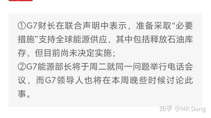 官方解读的对投资方向有影响的重点我也给大家画出来了。 原油的一系列新闻: 先是G7说要放储备但还没动手: |