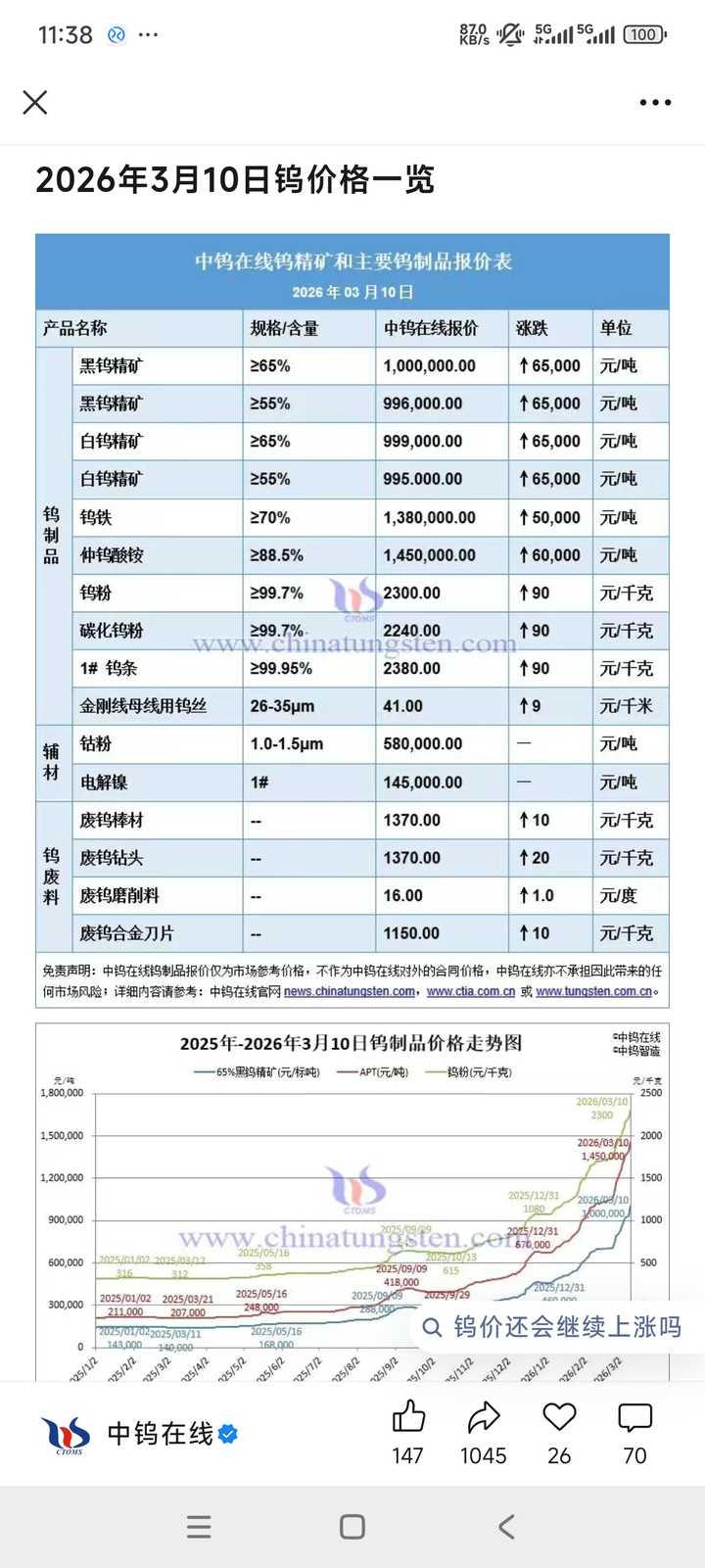 1.钨,目前一天一价,黑钨矿跳涨7%过百万了。只要价格不跌就完全没必要减持alm/中钨高新。 同样是中国控制定价权的品种,钨和锂的逻辑有彻底的不同。钨的上游全是中国人下游巨头全是洋人,所以涨价非常顺利,锂的上下游巨头和广期所都是中国人,导致全产业链都是心眼子。 2.铝,等一季度季报。 |