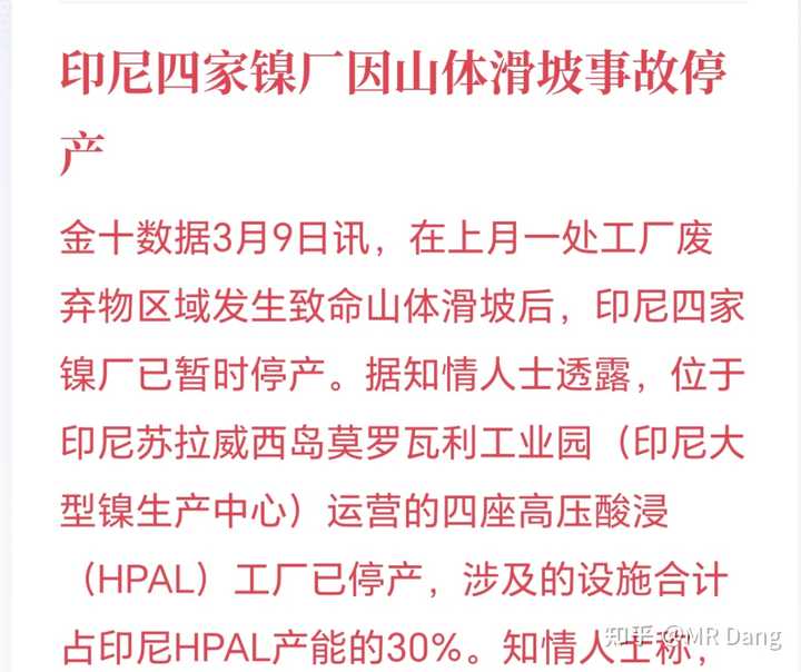 镍:印尼四家镍厂停产 |