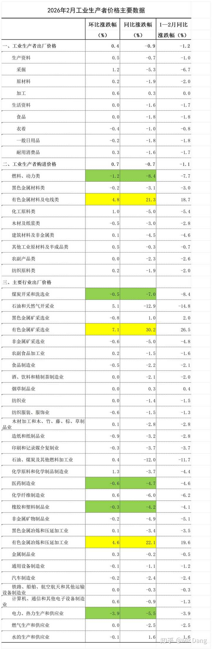 怎么说呢。。。还行。。。吧。。。。 有些问的多的,表现一般的行业我标了绿色。 需要注意的是,对中间环节的制造业来说,“购进”价格指数越低越好,“出厂”价值指数越高越好。 三月这个数据会大变样,因为有色和原油价格都发生了很大的变化,期待下个月的PPI |