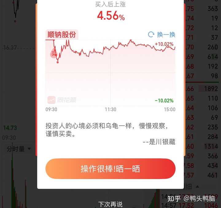 交易平淡,风平浪静。 昨天个人净值在银行的带领下又创了新高,资源和电网都不错,消费差点事,其他杂七杂八的都还可以。 收盘的时候一看银行这么强,我还以为是板块强,结果点进去一看,嘿,是绿的。 年线一拉,板块今年回调了8个多点,烂银行能在这种形式下把年线收红,真的心满意足了。 哦对了,还有小龙虾结结实实吃了一口大肉。 小龙虾这事就此翻篇,投机这种事情吧,生死有命,富贵在天,运气来了要接住,接不住很可能就没了。 还是那句话,鄙人不善择时,玩这种互摸口袋的游戏能偶尔赢一次,够我吹半年的,哈哈。 想投小龙虾的,等算力或者PCB回调的时候可以上车,选股选龙头就行了。 别自己想一出是一出,可以多问几个ai。 一个喜欢保护韭菜的博主,希望大家都少少踩坑,多多赚钱!!! 送礼物 |