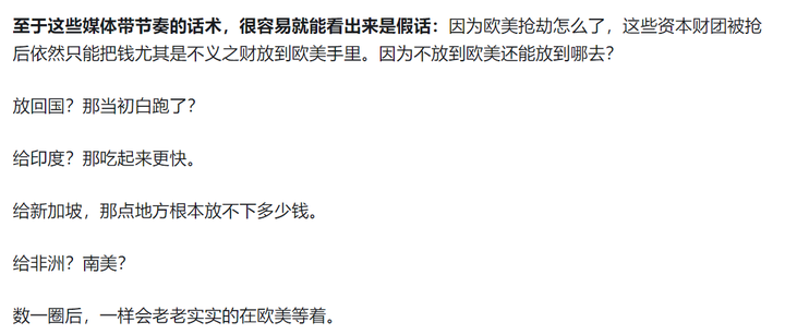 安世半导体算是中国第一次开始整体层面反抗。但第一次嘛,很多事情还不懂且害怕,漏洞百出瞻前顾后都是正常的事情,大伙都能理解对吧。 可在英国这种几百年抢劫经验的主看来,才经历第一次的那和雏没啥区别。只是这种学习能力强的目标,经历过第一次后会很快明白事。所以得抓紧抢才行,总不能等中国也变成老手,建立起维权机制后才来送人头。 而且抢劫这事也不用怕什么“影响营商环境,阻碍后续投资”,原理俺在2022年很多人说“抢劫俄罗斯寡头之后他国资本纷纷跑路”的问题下就说明过—— |