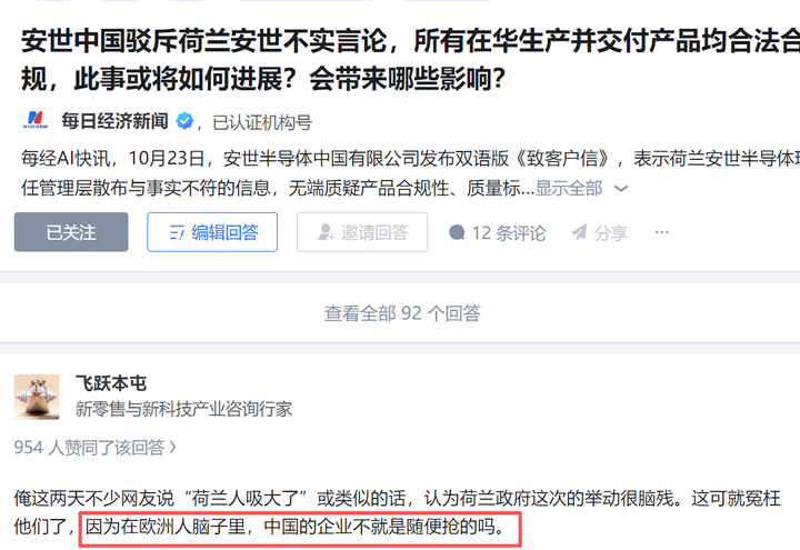 这类事情少说也有十年了,但我国企业层面也好,政府部门也好,之前大多睁一眼闭眼就当看不见。企业自己认亏的时候多,反抗的时候少。政府层面的实际助力也大多别想,能有个口头关注和抗议就不错了。 所以在很多人认为荷兰政府飞大了的时候,俺就说—— |