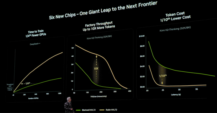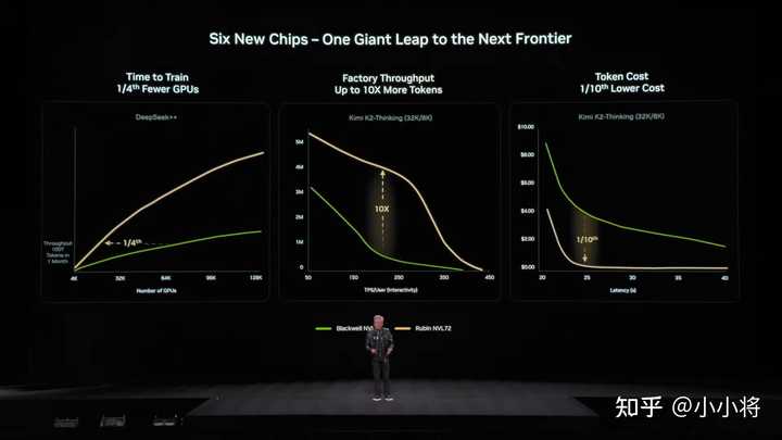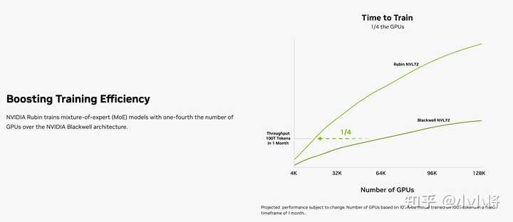 来大幅缩短训练时间并降低推理 token 成本。具体来说,Rubin 平台相比 NVIDIA Blackwell 平台,推理 token 成本最高可降低 10 倍,训练 MoE 模型所需的 GPU 数量减少 4 倍。 |