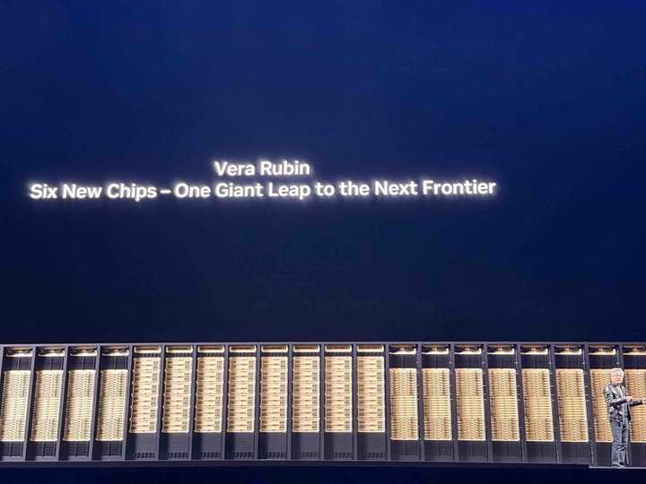 几个重要的事,我简单总结下: 1、今年的CES没有新的消费级GPU 我觉得最重要的一个是老黄已经明确表示不会在GeForce社区更新中发布新的消费级GPU了,这么多年的CES每年都会发布一个消费级的新品,但是今年没有了。 这对游戏玩家来说这不是好消息,但从商业角度看完全能理解老黄的战略方向的变了,他说有100万亿美元的产业投资正在向AI转移,这个市场规模完全不是消费级显卡能比的。所以在老黄眼里还真是 “游戏玩家不如狗” 。 2、Vera Rubin平台 这应该算是整个演讲里面最核心的发布:这个名字来自天文学家薇拉·鲁宾,她研究暗物质做出了巨大贡献,老黄还是继续以科学家来命名新产品。 这次发布的不是单个芯片而是由六种新芯片构成的完整系统,性能数据据说相当夸张:相比上一代Blackwell,推理性能提升5倍,训练性能提升3.5倍,token成本直接降低10倍。(PPT写的) |