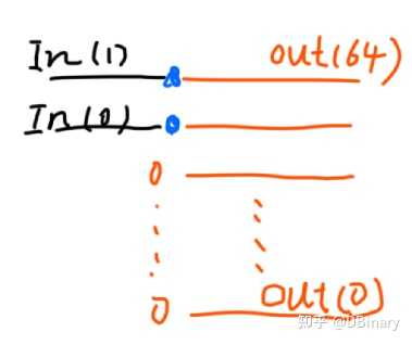 当然可以,2的64次方可以视作在一个位宽大于64b的寄存器中,1左移64位,甚至可以说这只是一个很简单的二进制信息表示问题,它代表着 10.....0(64个0) 但是这个问题显得有点太过于简单,所以为了让事情稍微变得有趣一点,我们稍微更改一下题目。 现在的CPU怎么在一个时钟周期内算出2的64次方? 那么,这个原本1000个人能回答上来的题目,马上就只剩下100人能答上来了,当然答案是当然可以,我们抓住一个重点,因为这仍然只是一个二进制的信息表示问题,并且这个移位的位数是一个常量,所以我们可以用一个非常简单的连线问题来解决,比如把输入的pin-1接到输出的pin-64,然后输出的其他引脚接0位就可以了,这是一个相当简单的组合逻辑电路,几乎不需要什么实现成本。 |