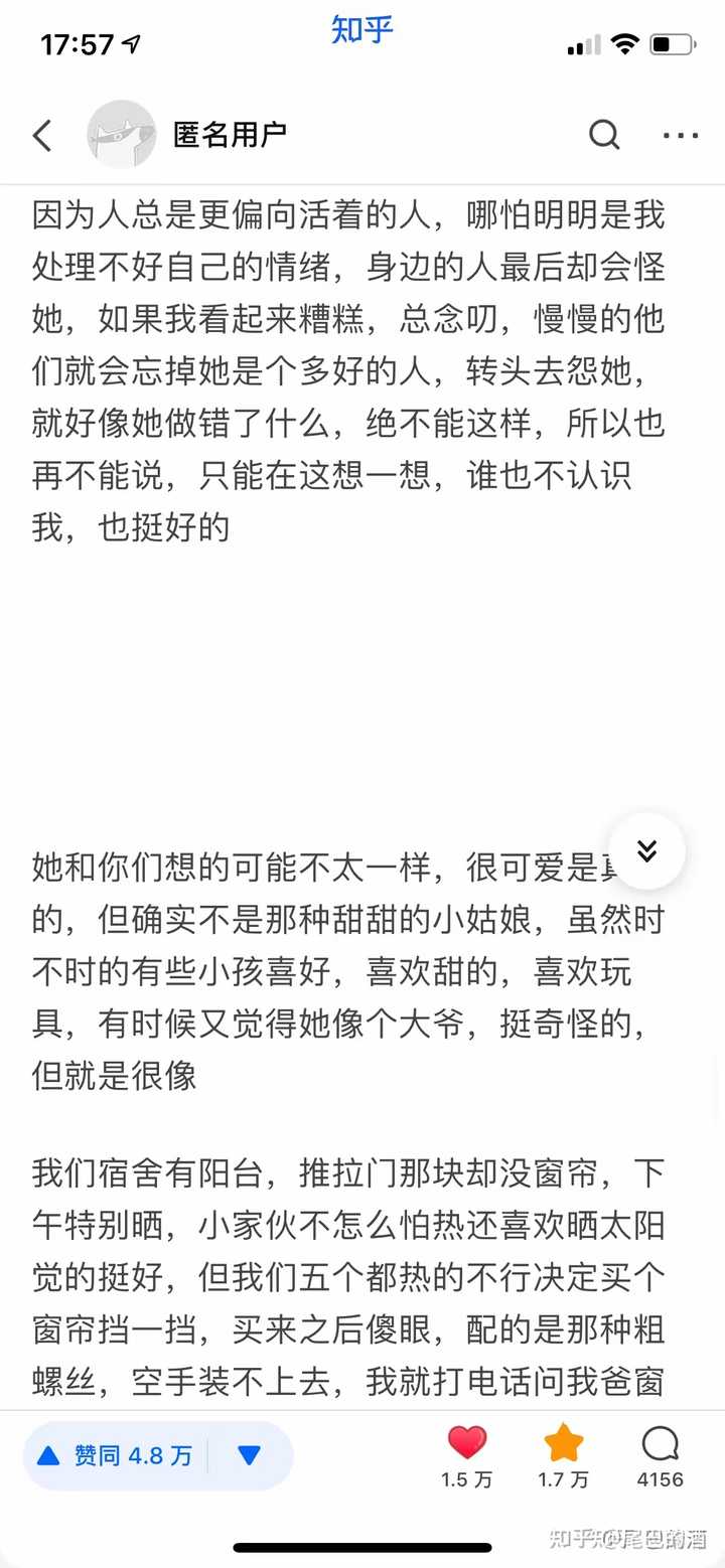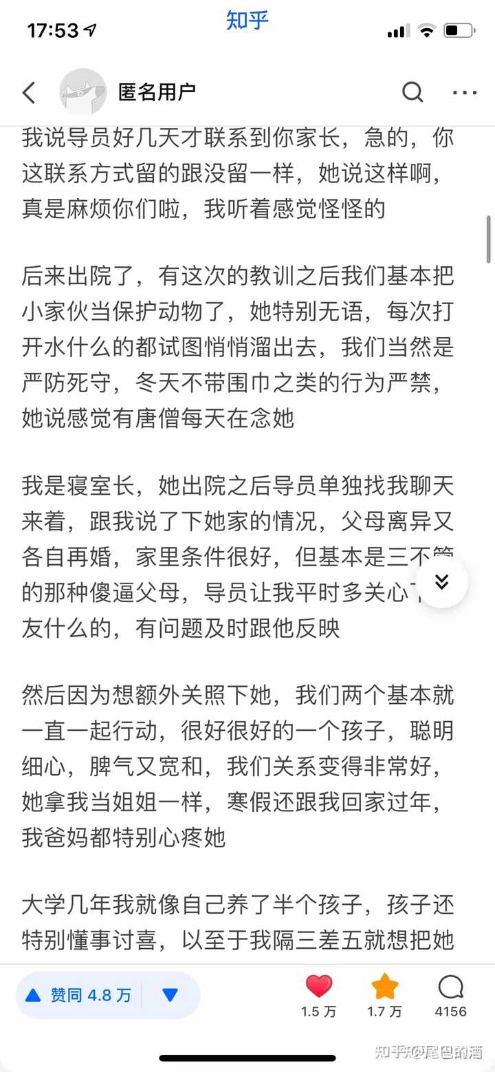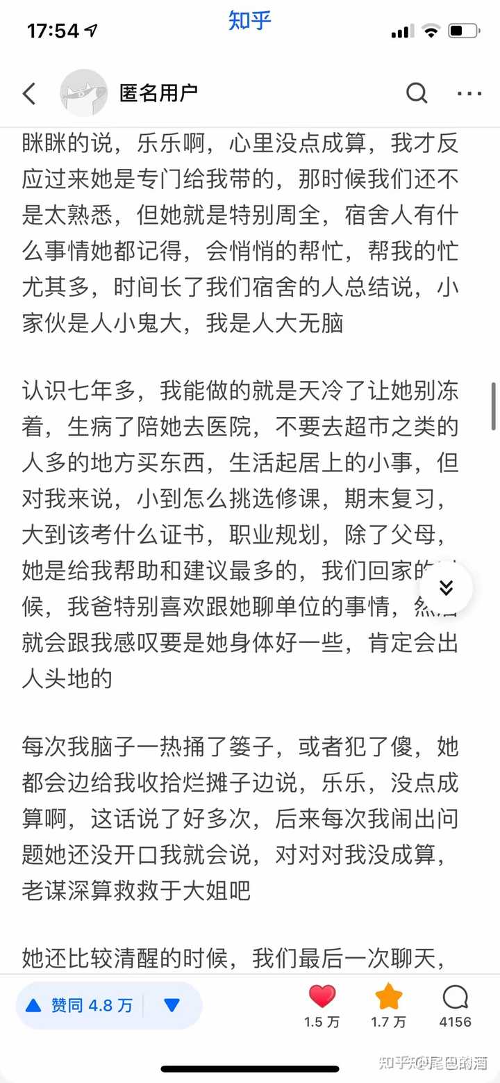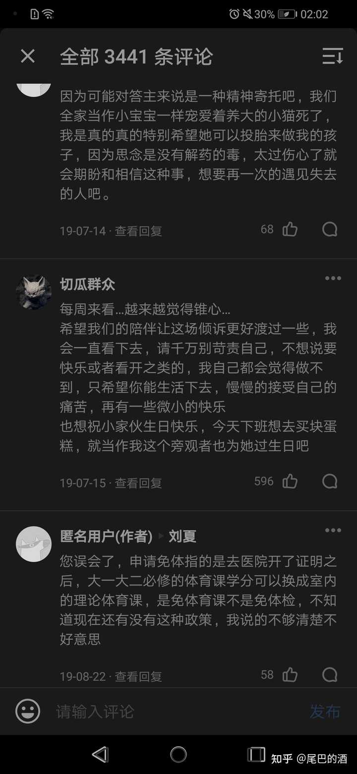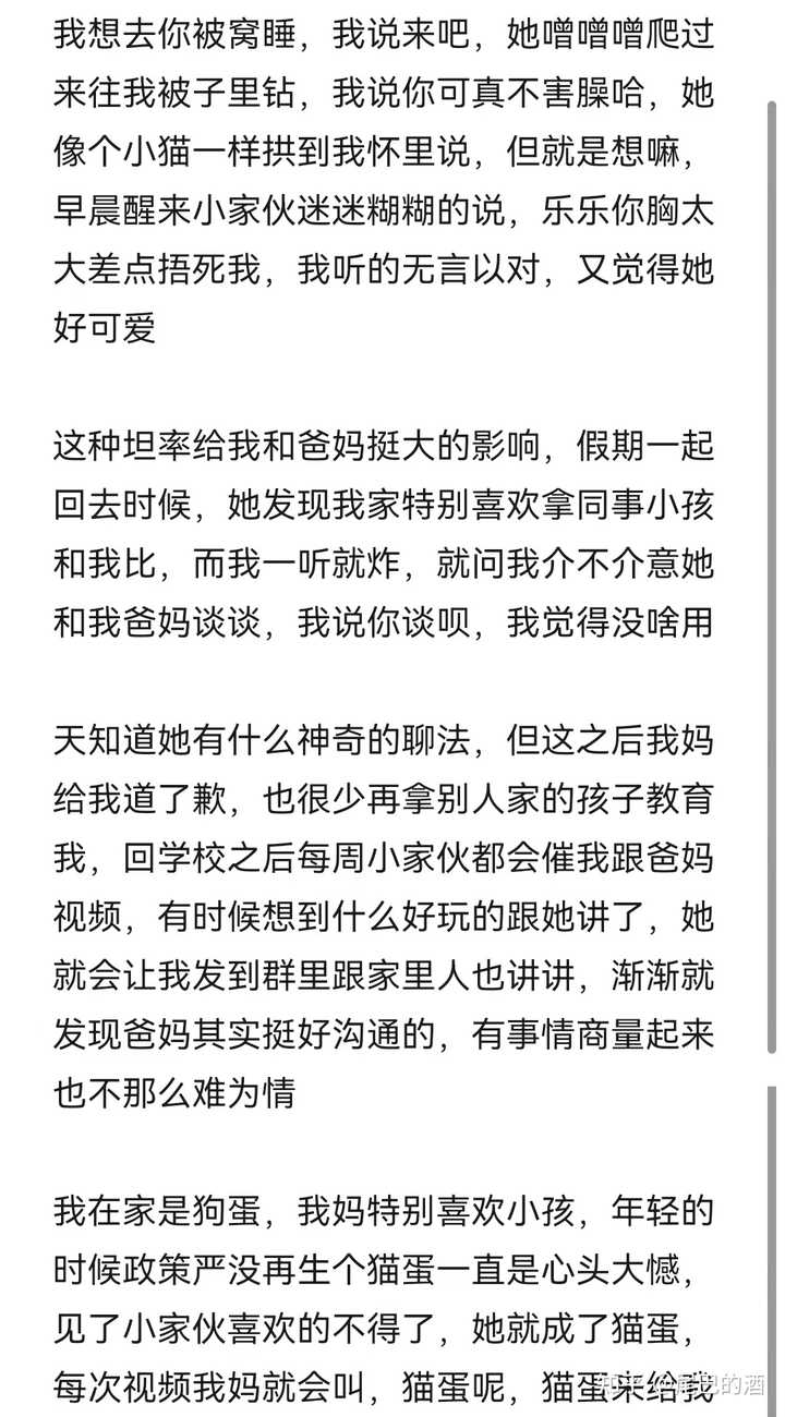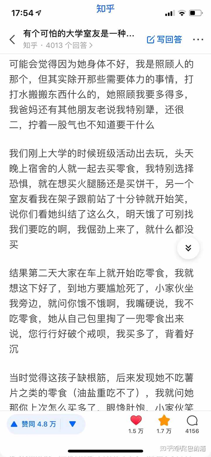 对这个回答印象太深刻了,当时是2019年,但是后来应该是被删掉了。初看只对小家伙感到心疼,看得次数多了却更被乐乐深沉的爱与善良打动,总是忍不住回想,也盼望真的有灵魂存在,不知道答主有没有真的生个女儿,希望答主一切都好,猫蛋狗蛋下辈子还要在一起啊…… 原来的问题是“有个可怕的大学室友是一种什么样的体验”记得当时底下有很多评论,还有答主的的回复,其实现在也很想再看看,但也已经都找不到了,如果有人记得当时的评论能不能麻烦也讲一讲,很感谢…… 注:原答主说过不要把这篇回答改编成小说或剧本,不要转载到知乎以外的平台(具体原话找不到了),谢谢大家。 翻出来旧手机补了一点当时的评论区回复,放在最下边了。 |