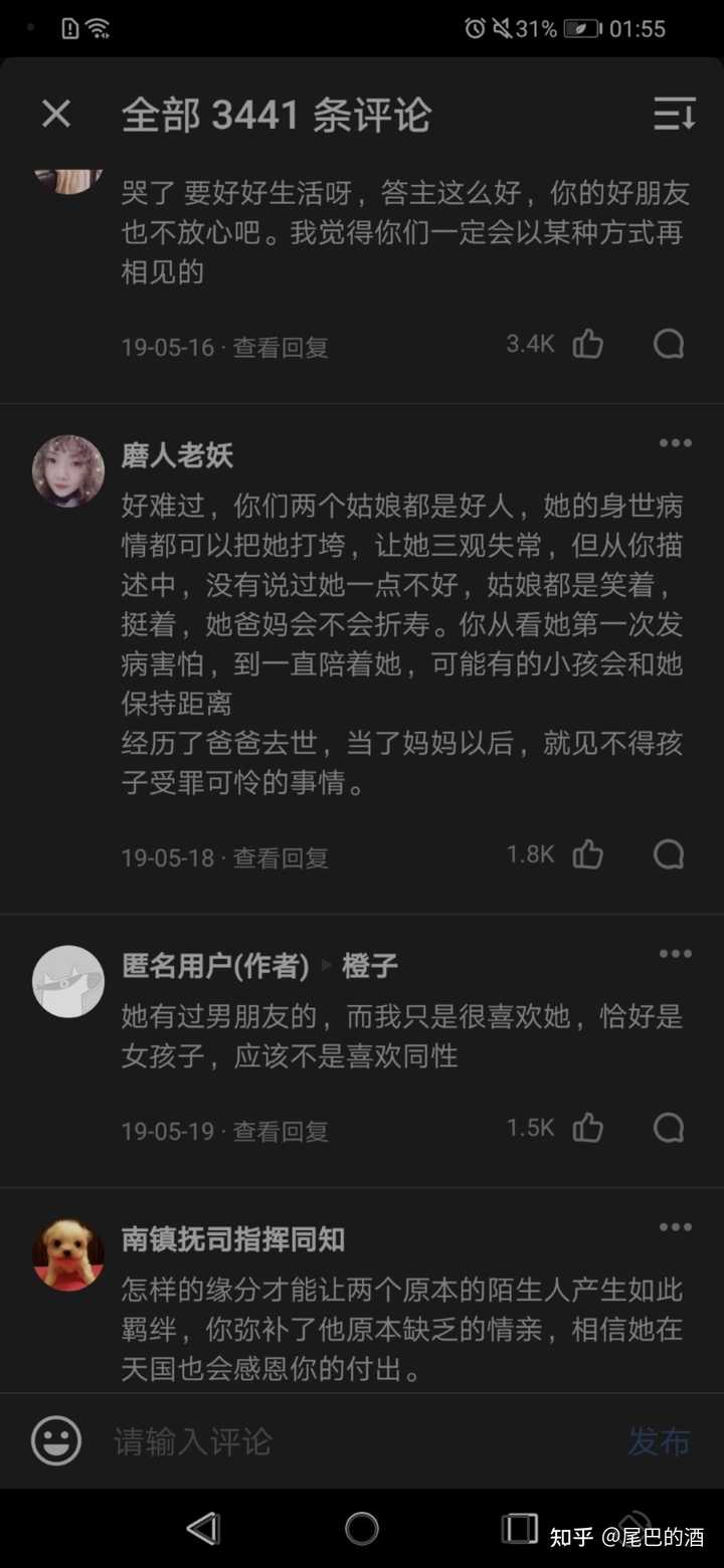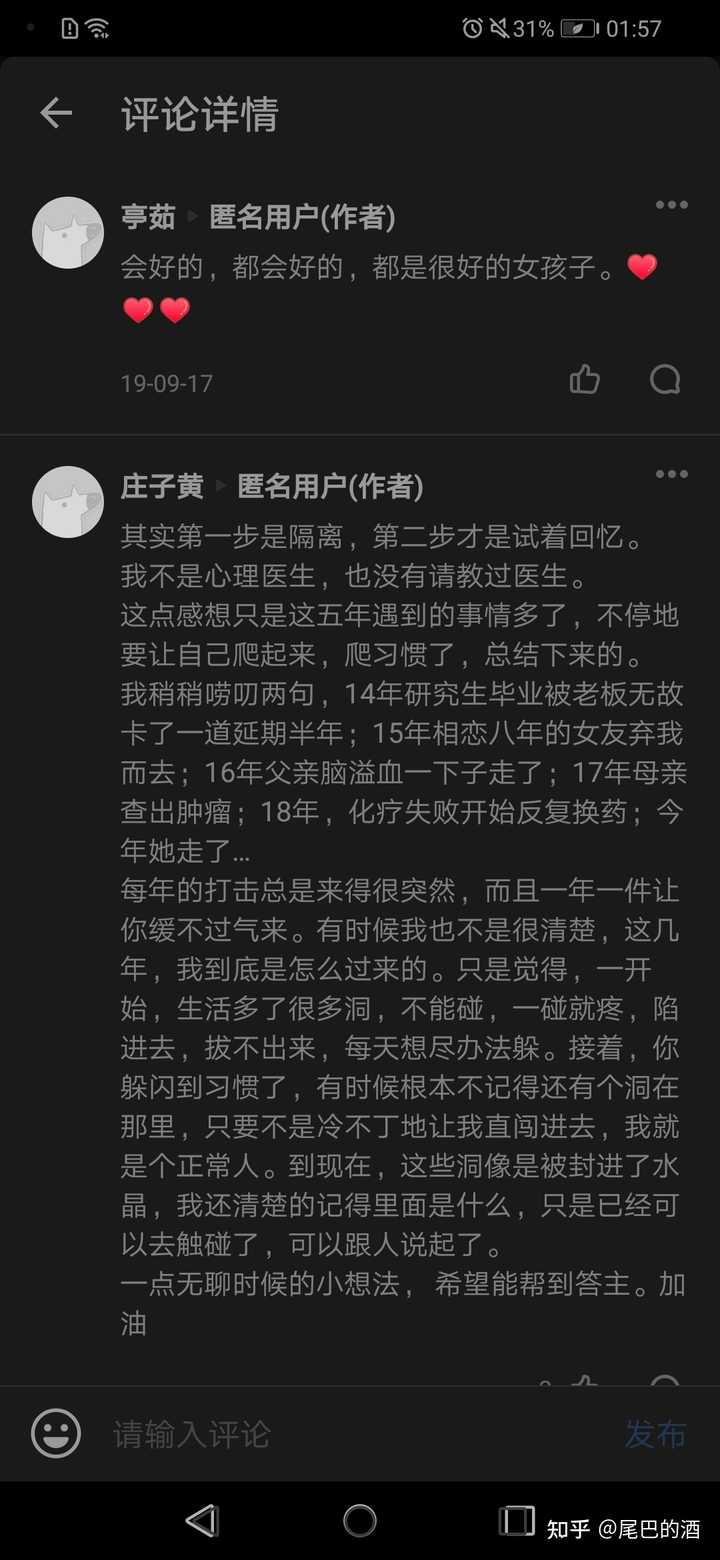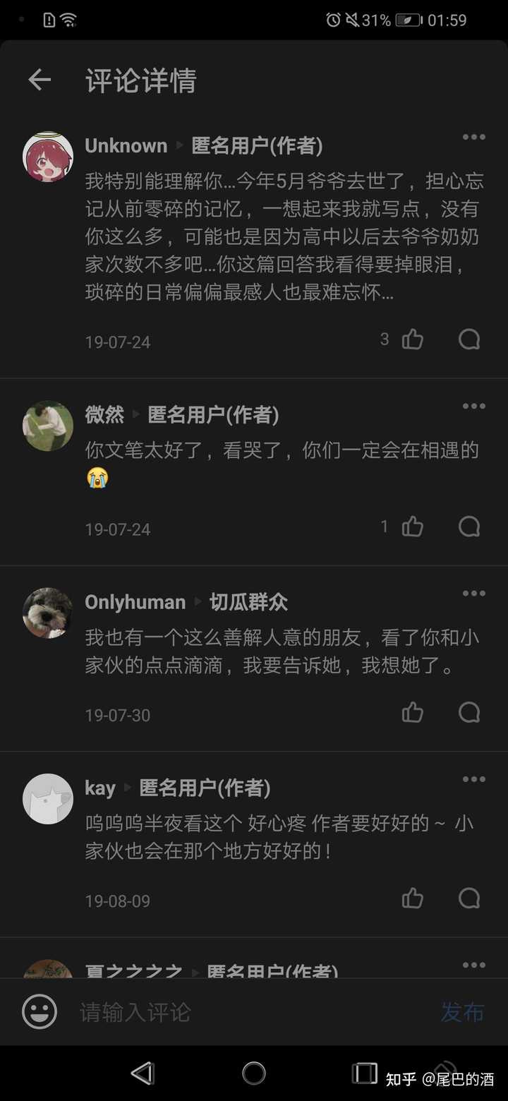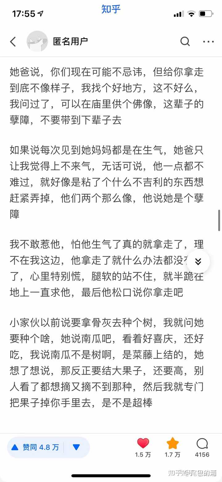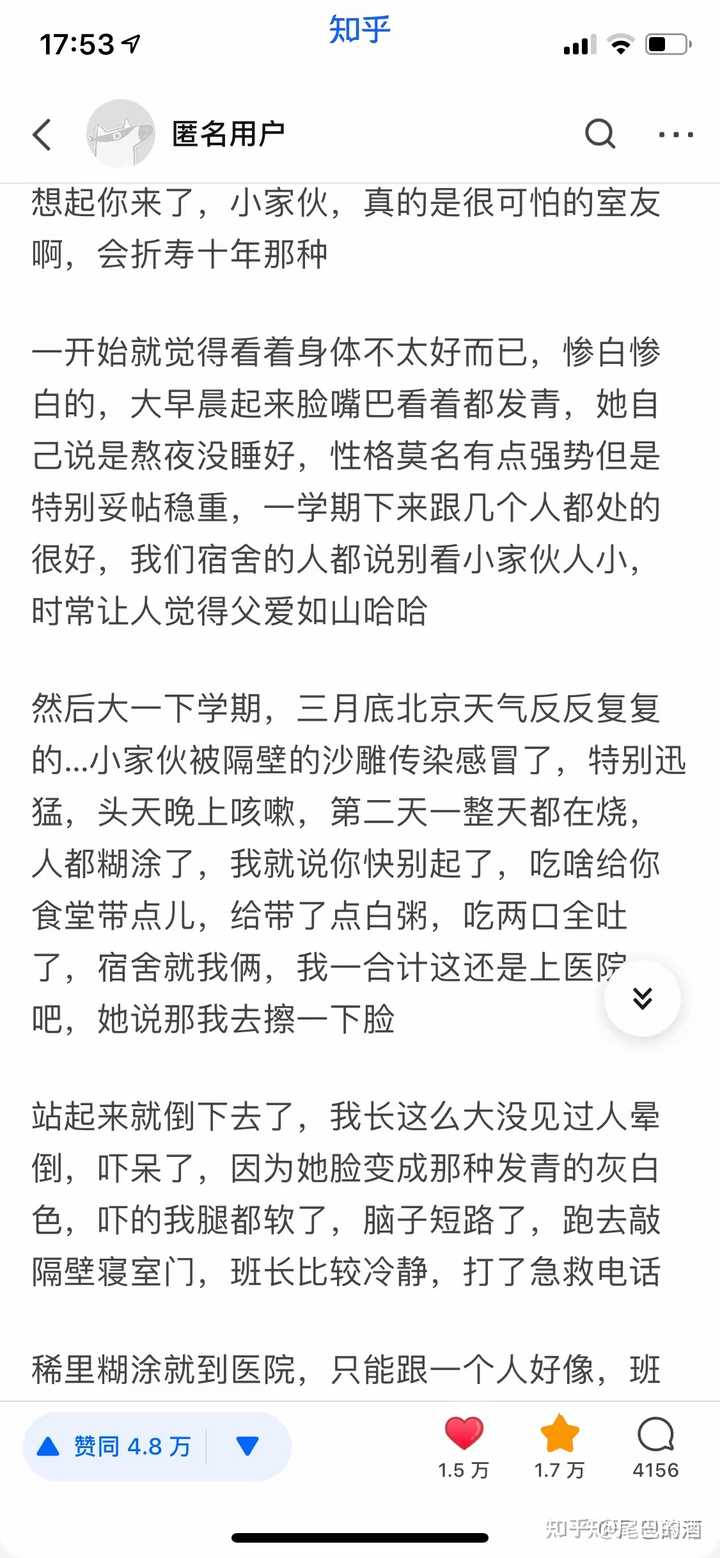 对这个回答印象太深刻了,当时是2019年,但是后来应该是被删掉了。初看只对小家伙感到心疼,看得次数多了却更被乐乐深沉的爱与善良打动,总是忍不住回想,也盼望真的有灵魂存在,不知道答主有没有真的生个女儿,希望答主一切都好,猫蛋狗蛋下辈子还要在一起啊…… 原来的问题是“有个可怕的大学室友是一种什么样的体验”记得当时底下有很多评论,还有答主的的回复,其实现在也很想再看看,但也已经都找不到了,如果有人记得当时的评论能不能麻烦也讲一讲,很感谢…… 注:原答主说过不要把这篇回答改编成小说或剧本,不要转载到知乎以外的平台(具体原话找不到了),谢谢大家。 翻出来旧手机补了一点当时的评论区回复,放在最下边了。 |