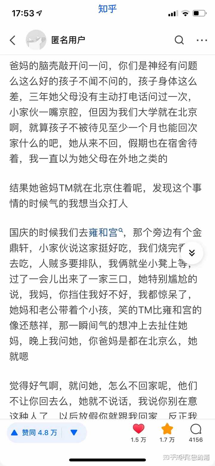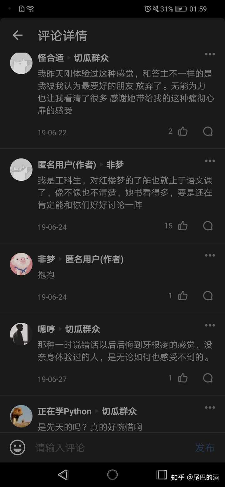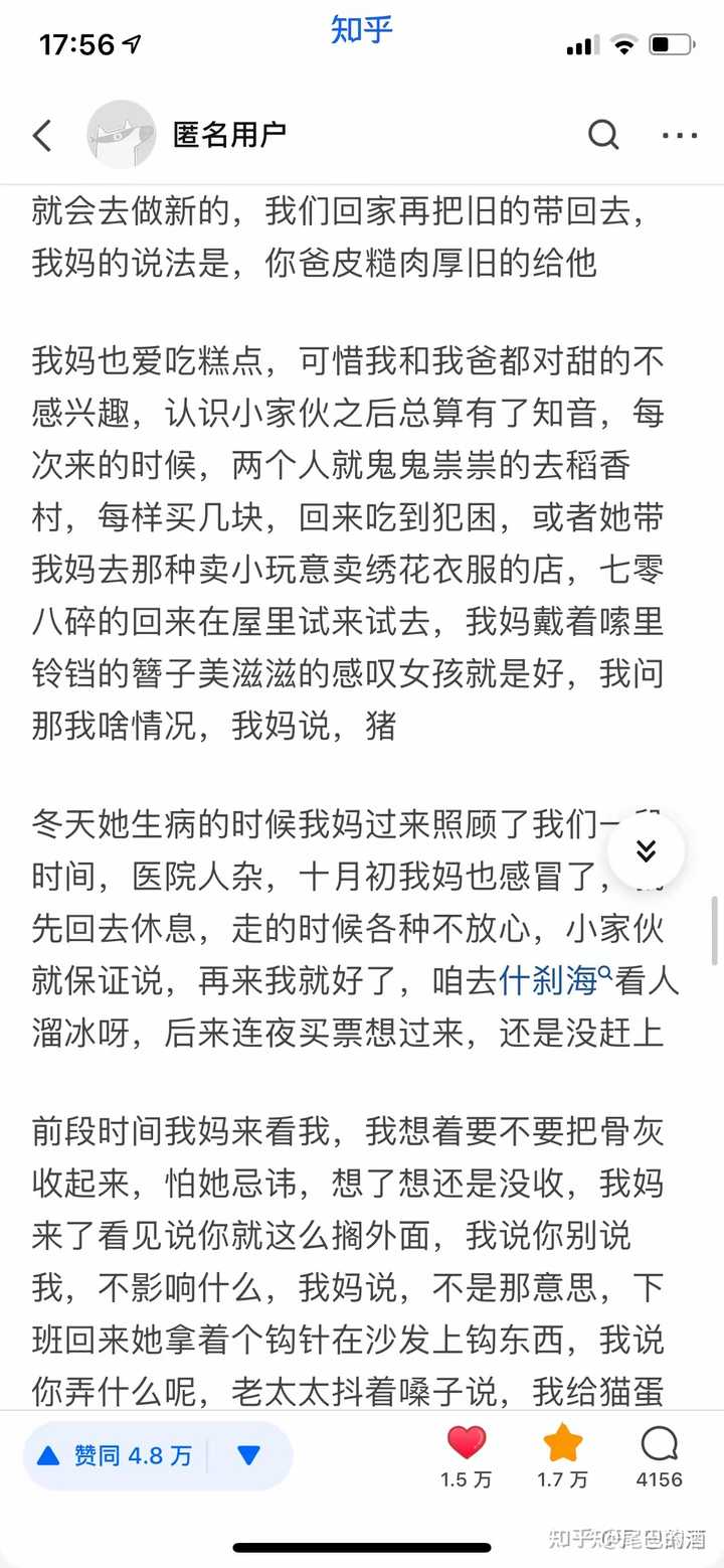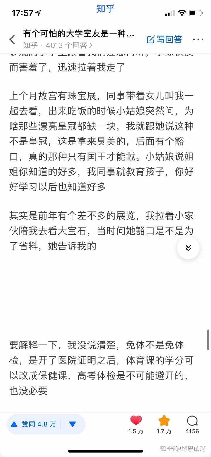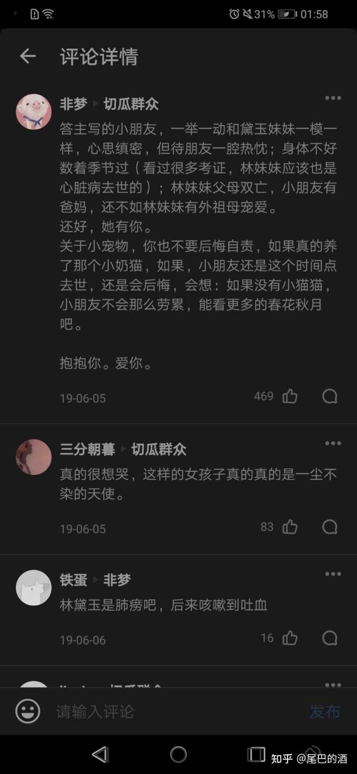 对这个回答印象太深刻了,当时是2019年,但是后来应该是被删掉了。初看只对小家伙感到心疼,看得次数多了却更被乐乐深沉的爱与善良打动,总是忍不住回想,也盼望真的有灵魂存在,不知道答主有没有真的生个女儿,希望答主一切都好,猫蛋狗蛋下辈子还要在一起啊…… 原来的问题是“有个可怕的大学室友是一种什么样的体验”记得当时底下有很多评论,还有答主的的回复,其实现在也很想再看看,但也已经都找不到了,如果有人记得当时的评论能不能麻烦也讲一讲,很感谢…… 注:原答主说过不要把这篇回答改编成小说或剧本,不要转载到知乎以外的平台(具体原话找不到了),谢谢大家。 翻出来旧手机补了一点当时的评论区回复,放在最下边了。 |