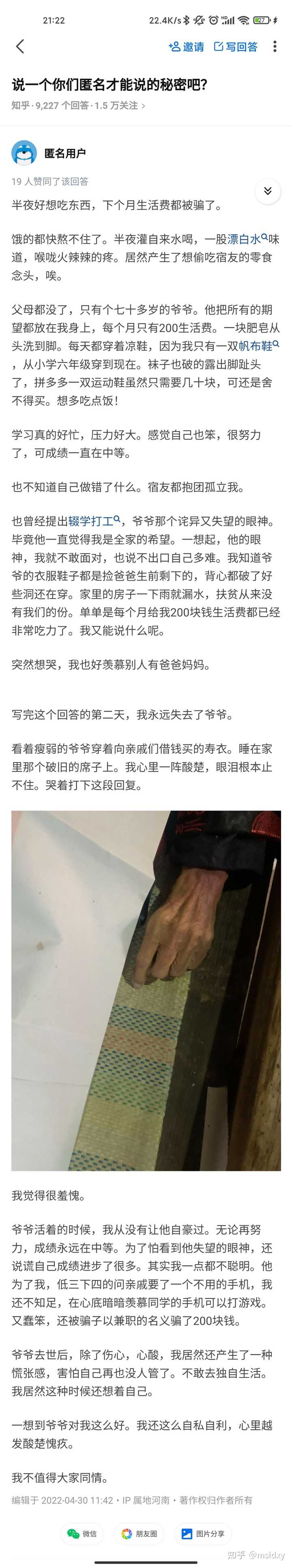 想找找这个小朋友,可能刚15岁,也不知道现在怎么样,之前疫情放开有没有坚持下去。 如果是真的的话,希望能提供一些帮助 更新: 评论区已有传送门 我并没有求助任何人, 这个回答下的好心人。如果遇到私信你要钱的骗子,千万不要回应跟理睬。 如果我真的有一天陷入绝境。我会打开这个回答。更新一段遇到的困境。并且留下联系方式,不是想求大家帮助我,只是希望能有人安慰鼓励我几句。 现在饥一顿饱一顿,饿着肚子躺在冷冰冰的床上,我有时候会想。活着还是很困难的。也许人生来就是受苦的吧。 我希望能快点长大,快点变老。等我长大了,老了。就再也不会挨饿了吧。 这是小女孩最后一次在评论区的全部回复,下面还有个补充 我的手机停机了,并没有网络。附近有些信号微弱的WiFi,只连上有网的时候。我才能上线看到回答,所以可能好几天甚至更久,不定时才回复一次。 四月底她说找亲戚借了500然后出门打工,上面评论是五月的. 排除技术手段的话,如果不是她主动出现,大概率是找不到的. 那个帖子有很多好心人说了暖心的话,希望她能在偶尔的wifi中看到,最后改变心意去继续读书. 同样也希望网络上的好心人要谨慎,不要被骗了. 再次更新: 可能是因为这边过去的人多了,上次更新完当天那个帖子也更新了,讲了这么多时间来的情况,打工,被骗,身边也有人帮助。后面又更新补充了以前在学校被排挤,还有见到没父母的同学活在焦点下,自己不想这样等等。今天下午听说又更新了,但是没多久帖子就没了,不知道是不是她自己删了,还是其他什么原因。 如果是她自己删的,结合她之前说的,我勉强能理解一些,她不想被过多人关注,看到网上这么多人为了自己花费精力,内心觉得愧疚,认为给大家添麻烦了。 这几天我也在想,就因为分享了别人的回答火了,其实我也没做什么,就感觉有点配不上,再加上几乎都能找到原帖了,所以也犹豫要不要删了这个回答,现在,那个回答不在了,我这就当留个纪念吧。如果那边回来了请给我提醒下。 最后,真的假的我跟你们一样不清楚,可能还有些被人私聊找过,还是那句话,网上一定要谨慎。 |