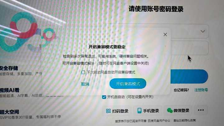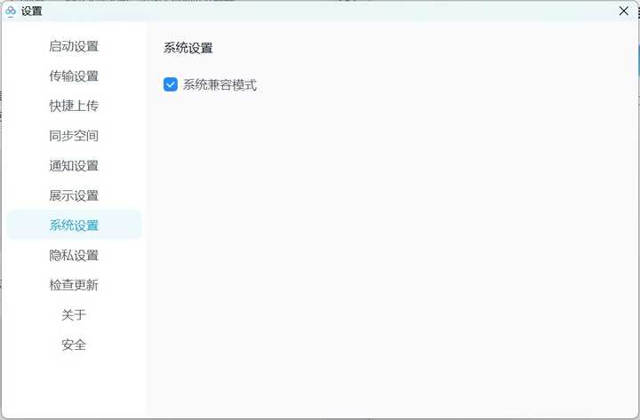 关闭方法打开百度网盘软件,点击右上角的省略点按钮,选择列表中的「设置」选项。切换到「系统设置」选修卡,将默认打?勾选的「系统兼容模式」选项去掉即可。 |