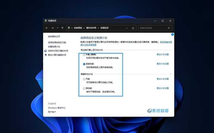 方法2 | 设置自定义电源计划按下 Win + R 快捷键,打开运行对话框,输入「powercfg.cpl」名称,点击确定按钮。在「电源选项」窗口,展开下面的「隐藏附加计划」面板,勾选「高性能」选项。并点击右侧的「更改计划设置」选项,修改「高级电源设置」里面的设置参数,点击 保存修改 按钮。 |